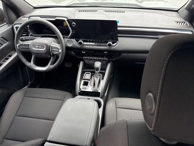 Canyon Safety Plus Package (Rear Cross Traffic Braking), Convenience Package (120-Volt Bed Mounted Power Outlet, 2 Rear USB Ports in Center Console (Charge-Only), Driver & Front Passenger Illuminated Visors, Dual-Zone Auto Climate Control Air Conditioning, EZ-Lift & Lower Tailgate, Front LED Fog Lamps, Inside Rear-View Auto-Dimming Mirror, Interior Overhead Courtesy Light w/Dual Reading Lamp, MultiStow Tailgate Storage Compartment, Rear of Console 120-Volt Power Outlet, Remote Vehicle Starter System, Tailgate Keyed Cylinder Lock, and Tilt & Telescopic Manual Steering Column), Preferred Package (8-Way Power Driver Seat Adjuster, Heated Driver & Front Passenger Seats, and Power Driver Lumbar Control Seat Adjuster), Technology Package (Adaptive Cruise Control, HD Surround Vision, and Rear Pedestrian Alert), 1 Rear USB Port in Center Console (Charge-Only), 2 1st Row USB Charge/Data Ports, 3.42 Rear Axle Ratio, 4-Way Manual Front Passenger Seat Adjuster, 4-Wheel Disc Brakes, 6 Speakers, 6-Speaker Audio System Feature, 6-Way Manual Driver Seat Adjuster, ABS brakes, Air Conditioning, Alloy wheels, AM/FM radio, Apple CarPlay/Android Auto, Auto High-beam Headlights, Automatic Emergency Braking, Automatic Stop/Start, Brake assist, Bumpers: body-color, Canyon Pro Safety, Cloth Seat Trim, Compass, Delay-off headlights, Driver door bin, Driver vanity mirror, Dual front impact airbags, Dual front side impact airbags, Electronic Stability Control, Emergency communication system: OnStar, Following Distance Indicator, Forward Collision Alert, Front anti-roll bar, Front Bucket Seats, Front Center Armrest, Front Passenger Seatback Map Pocket, Front Pedestrian & Bicyclist Braking, Front wheel independent suspension, Heated door mirrors, Illuminated entry, IntelliBeam Automatic High Beam On/Off, Lane Keep Assist w/Lane Departure Warning, Low tire pressure warning, Navigation System, Occupant sensing airbag, Off-Road Suspension, Outside temperature display, Overhead airbag, Overhead console, Panic alarm, Passenger door bin, Passenger vanity mirror, Power door mirrors, Power steering, Power windows, Radio data system, Radio: 11.3 Diagonal Premium GMC Infotainment Sys, Rear reading lights, Rear step bumper, Rear window defroster, Remote keyless entry, Security system, SiriusXM w/360L, Speed control, Speed-sensing steering, Split folding rear seat, Steering wheel mounted audio controls, Stop/Start System Disable Button Engine Control, Tachometer, Tilt steering wheel, Traction control, Trip computer, Variably intermittent wipers, Wheels: 18 x 8.5 Dark Gray Painted Aluminum, and Wireless Apple CarPlay/Wireless Android Auto.
