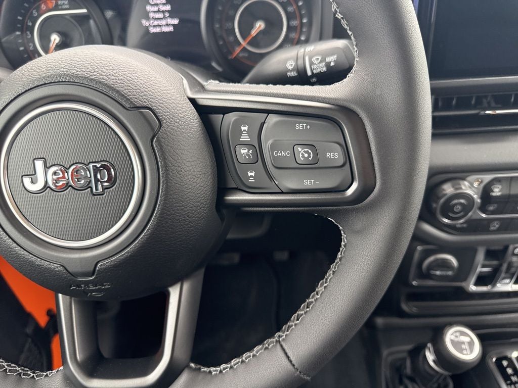 Convenience Group (Corning Gorilla Glass, Daytime Running Lamp System, Emergency/Assistance Call, Front Door Locks 2-Door Passive Entry, Heated Front Seats, Heated Steering Wheel, Remote Start System, and Universal Garage Door Opener), Max Tow Package w/4.10 Axle Ratio (110 MPH Vehicle Max Speed Calibration, Anti-Spin Differential Rear Axle, Black Molded-In-Color Fender Flares (2-Piece), Class IV Receiver Hitch, Conventional Differential Front Axle, Dana M210 Wide Front Axle, Dana M220 Wide Rear Axle, and Heavy-Duty Engine Cooling), Premium Package (Body Color 3-Piece Hard Top, Freedom Panel Storage Bag, No Soft Top, Premium McKinley Trimmed Seats, Rear Sliding Window, Rear Window Defroster, and Wheels: 18 x 7.5 Machined/Painted Gray), Quick Order Package 24S Sport S (Advanced Brake Assist, Automatic Headlamps, Deep Tint Sunscreen Windows, Enhanced Adaptive Cruise Control, Full Speed Forward Collision Warning Plus, Normal Duty Plus Suspension, Power Heated Mirrors, Premium Wrapped Steering Wheel, Security Alarm, Sun Visors w/Illuminated Vanity Mirrors, and Wheels: 17 x 7.5 Gray), 12.3 Touchscreen Display, 4-Wheel Disc Brakes, 4G LTE Wi-Fi Hot Spot, 8 Speakers, ABS brakes, Air Conditioning, Alexa Built-In, AM/FM radio: SiriusXM, Apple CarPlay, Apple CarPlay/Android Auto, Brake assist, Cloth Low-Back Bucket Seats, Compass, Connectivity - US/Canada, Delay-off headlights, Driver door bin, Driver vanity mirror, Dual front impact airbags, Dual front side impact airbags, Electronic Stability Control, Front anti-roll bar, Front Bucket Seats, Front Center Armrest w/Storage, Front fog lights, Front reading lights, Google Android Auto, Illuminated entry, Integrated roll-over protection, Low tire pressure warning, Normal Duty Suspension, Occupant sensing airbag, Outside temperature display, Overhead airbag, Panic alarm, ParkView Rear Back-Up Camera, Passenger door bin, Passenger vanity mirror, Power steering, Power windows, Radio data system, Radio: Uconnect 5 w/12.3 Display, Rear anti-roll bar, Rear reading lights, Remote keyless entry, Speed control, Split folding rear seat, Steering wheel mounted audio controls, Tachometer, Telescoping steering wheel, Tilt steering wheel, Traction control, Trip computer, USB Host Flip, Variably intermittent wipers, Voltmeter, and Wheels: 17 x 7.5 Black Steel Styled.