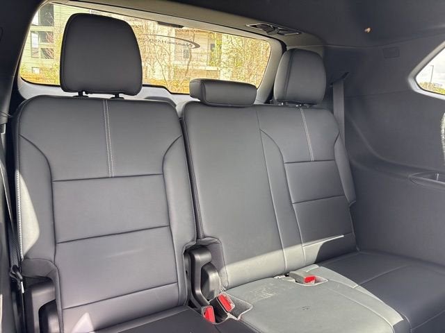 All-Weather Package (1st and 2nd Row All-Weather Floor Mats, 3rd Row All-Weather Floor Liner, and All-Weather Rear Cargo Mat), Black Edition (Front and Rear Black GMC Emblems, Gloss Black Roof Rails, High Gloss Black Door Upper Moldings, and Wheels: 22 x 8.5 Gloss Black Aluminum), Elevation Premium Package (3-Channel Programmable Universal Home Remote, 6-Way Power Front Passenger Seat Adjuster, 7-Passenger Seating (2-2-3 Seating Configuration), CoreTec Seat Trim, and Front Passenger Power Lumbar Seat Adjuster), Luxury Package (8 Diagonal Head-Up Display, Heated Rear Outboard Seating Positions, Heated Wiper Park, and Laminated Acoustic Glass), FWD, After Dk Coretec Cloth, 12 Speakers, 18 x 7.5 Aluminum Wheels, 3.49 Final Drive Axle Ratio, 3rd row seats: split-bench, 4-Way Manual Front Passenger Seat Adjuster, 4-Wheel Disc Brakes, 8-Passenger Seating (2-3-3 Seating Configuration), 8-Way Power Driver Seat Adjuster, ABS brakes, Air Conditioning, Alloy wheels, AM/FM radio: SiriusXM with 360L, Apple CarPlay/Android Auto, Auto High-beam Headlights, Automatic temperature control, Bodyside moldings, Bose Premium 12-Speaker System with Sub-Woofer, Brake assist, Bumpers: body-color, Cloth Seat Trim, Compass, Delay-off headlights, Driver 2-Way Power Lumbar Seat Adjuster, Driver door bin, Driver vanity mirror, Dual front impact airbags, Dual front side impact airbags, Electronic Stability Control, Emergency communication system: OnStar Services capable, Exterior Parking Camera Rear, Four wheel independent suspension, Front anti-roll bar, Front Bucket Seats, Front Center Armrest, Front dual zone A/C, Front fog lights, Front reading lights, Fully automatic headlights, Heated door mirrors, Heated Driver and Front Passenger Seats, Heated front seats, Heated steering wheel, Illuminated entry, Leather steering wheel, Low tire pressure warning, Navigation System, Occupant sensing airbag, Outside temperature display, Overhead airbag, Overhead console, Panic alarm, Panoramic Power Sunroof with Sunshade, Passenger door bin, Passenger vanity mirror, Performance Suspension, Power door mirrors, Power driver seat, Power Liftgate, Power steering, Power windows, Radio data system, Radio: 15 Diagonal Premium GMC Infotainment System, Rear air conditioning, Rear anti-roll bar, Rear reading lights, Rear seat center armrest, Rear side impact airbag, Rear window defroster, Rear window wiper, Remote keyless entry, Security system, SiriusXM with 360L, Speed control, Speed-sensing steering, Split folding rear seat, Spoiler, Sport steering wheel, Steering wheel mounted audio controls, Tachometer, Telescoping steering wheel, Tilt steering wheel, Traction control, Trip computer, Turn signal indicator mirrors, Variably intermittent wipers, and Voltmeter. 20/26 City/Highway MPG