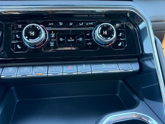 Gooseneck/5th Wheel Prep Package, Technology Package (Inside Rearview Auo-Dimming Rear Camera Mirror and Multicolor 15 Diagonal Head-Up Display), X31 Off-Road Package (Hill Descent Control and Off-Road Suspension), 10-Speed Automatic, 4WD, Atmosphere/Bwnstone Forge Leather, 12-Way Power Driver Seat Adjuster with Lumbar, 12-Way Power Passenger Seat Adjuster with Lumbar, 120-Volt Bed Mounted Power Outlet, 120-Volt Instrument Panel Power Outlet, 2 Charge-Only Rear USB Ports, 2 Charge/Data USB Ports Inside Center Console, 2 USB Ports, 2-Speed Active Transfer Case, 4-Wheel Disc Brakes, 7 Speakers, ABS brakes, Air Conditioning, Alloy wheels, AM/FM radio: SiriusXM with 360L, Apple CarPlay/Android Auto, Auto High-beam Headlights, Auto-dimming door mirrors, Auto-dimming Rear-View mirror, Automatic Emergency Braking, Automatic temperature control, Bed View Camera with Two Trailer Camera Provisions, Bose Premium 7-Speaker Sound System, Brake assist, Buckle to Drive, Bumpers: body-color, Compass, Deep-Tinted Glass, Delay-off headlights, Driver door bin, Driver Memory, Driver vanity mirror, Dual front impact airbags, Dual front side impact airbags, Electric Rear-Window Defogger, Electronic Stability Control, Emergency communication system: OnStar, Floor-Mounted Center Console, Following Distance Indicator, Forge Perforated Leather-Appointed Front Seat Trim, Forward Collision Alert, Front anti-roll bar, Front Bucket Seats, Front Center Armrest, Front dual zone A/C, Front fog lights, Front Pedestrian Braking, Front Rain-Sensing Wipers, Front reading lights, Front wheel independent suspension, Fully automatic headlights, Garage door transmitter, Genuine wood dashboard insert, Genuine wood door panel insert, HD Surround Vision, Heated 2nd Row Outboard Seats, Heated door mirrors, Heated Driver and Front Outboard Passenger Seats, Heated front seats, Heated rear seats, Heated steering wheel, Heavy-Duty 80 Amp Battery, Hitch Guidance with Hitch View, Illuminated entry, in-Vehicle Trailering System App, IntelliBeam Automatic High Beam on/Off, Keyless Open and Start, Lane Departure Warning System, LED Cargo Area Lighting, LED Smoked Amber Roof Marker Lamps, Low tire pressure warning, Manual Tilt-Wheel/Telescoping Steering Column, Memory seat, Occupant sensing airbag, OnStar Services Capable, Outside temperature display, Overhead airbag, Overhead console, Panic alarm, Passenger door bin, Passenger vanity mirror, Pickup Box, Polished Exhaust Tip, Power door mirrors, Power driver seat, Power Front Passenger Windows with Express Up/Down, Power passenger seat, Power Sliding Rear Window with Defogger, Power steering, Power Sunroof, Power windows, Premium audio system: Premium GMC Infotainment System, Push Button Start, Radio: AM/FM Stereo with Premium GMC Infotainment System, Rain sensing wipers, Rear Cross Traffic Alert, Rear reading lights, Rear seat center armrest, Rear step bumper, Rear Wheelhouse Liners, Rear window defroster, Remote keyless entry, Remote Vehicle Starter System, Safety Alert Seat, Security system, Signature Chrome Denali Grille, SiriusXM with 360L Trial Subscription, Speed control, Speed-sensing steering, Split folding rear seat, Spray-on Pickup Bedliner with GMC Logo, Steering Wheel Audio Controls, Steering wheel mounted audio controls, Tachometer, Telescoping steering wheel, Tilt steering wheel, Traction control, Trailer Cam Provisions and Trailer Viewing Software, Trailer Side Blind Zone Alert, Trip computer, Turn signal indicator mirrors, Ultrasonic Front and Rear Park Assist, Unauthorized Entry Theft-Deterrent System, Universal Home Remote, Variably intermittent wipers, Ventilated Driver and Front Passenger Seats, Ventilated front seats, Voltmeter, Wheels: 20 Ultra Bright Machined, Wireless Charging, and W Price includes: $500 -