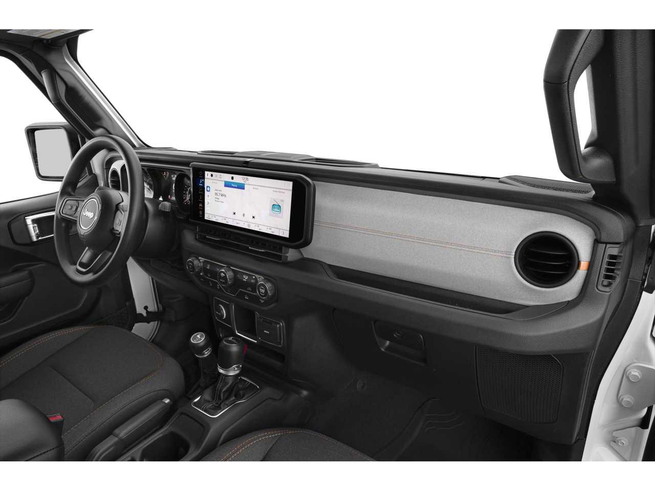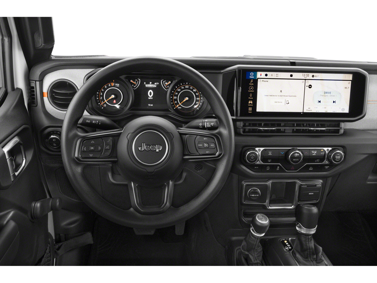 Convenience Group (Air Conditioning with Auto Temp Control, Cluster 7.0 TFT Color Display, Corning Gorilla Glass, Daytime Running Lamp System, Emergency/Assistance Call, Front Door Locks 2-Door Passive Entry, Heated Front Seats, Heated Steering Wheel, Remote Start System, and Universal Garage Door Opener), 110 Mph Vehicle Max Speed Calibration, 12.3 Touchscreen Display, 3.73 Rear Axle Ratio, 4-Wheel Disc Brakes, 4G LTE Wi-Fi Hot Spot, 8 Speakers, ABS brakes, Air Conditioning, Alexa Built-in, AM/FM radio: SiriusXM with 360L, Apple CarPlay, Apple CarPlay/Android Auto, Black 3-Piece Hard Top, Brake assist, Compass, Connectivity - US/Canada, Delay-off headlights, Driver door bin, Driver vanity mirror, Dual front impact airbags, Dual front side impact airbags, Electronic Stability Control, For Details, Visit DriveUconnect.com, Freedom Panel Storage Bag, Front anti-roll bar, Front Bucket Seats, Front Center Armrest w/Storage, Front fog lights, Front reading lights, Google Android Auto, Illuminated entry, Integrated Center Stack Radio, Integrated roll-over protection, Low tire pressure warning, MOPAR Spray in Bedliner, MyFlexCare Service Plan, Normal Duty Suspension, Occupant sensing airbag, Outside temperature display, Overhead airbag, Panic alarm, ParkView Rear Back-Up Camera, Passenger door bin, Passenger vanity mirror, Power steering, Power windows, Radio data system, Radio: Uconnect 5 with 12.3 Display, Rear anti-roll bar, Rear reading lights, Rear Sliding Window, Rear Window Defroster, Remote keyless entry, SiriusXM Radio Service, SiriusXM with 360L, Speed control, Split folding rear seat, Steering wheel mounted audio controls, Tachometer, Telescoping steering wheel, Tilt steering wheel, Traction control, Trip computer, USB Host Flip, Variably intermittent wipers, Voltmeter, and Wheels: 17 x 7.5 Black Steel StyleD.