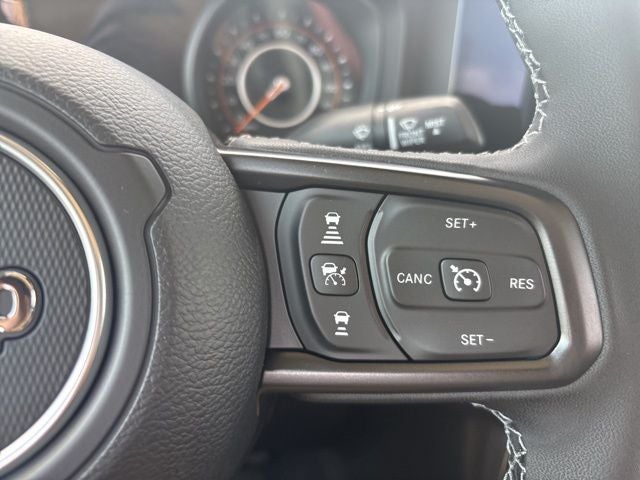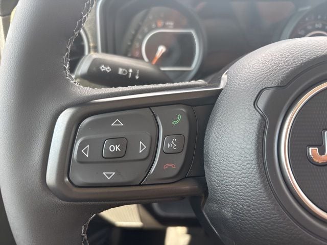 Convenience Group (Air Conditioning with Auto Temp Control, Cluster 7.0 TFT Color Display, Corning Gorilla Glass, Daytime Running Lamp System, Emergency/Assistance Call, Front Door Locks 2-Door Passive Entry, Heated Front Seats, Heated Steering Wheel, Remote Start System, and Universal Garage Door Opener), 110 Mph Vehicle Max Speed Calibration, 12.3 Touchscreen Display, 3.73 Rear Axle Ratio, 4-Wheel Disc Brakes, 4G LTE Wi-Fi Hot Spot, 8 Speakers, ABS brakes, Air Conditioning, Alexa Built-in, AM/FM radio: SiriusXM with 360L, Apple CarPlay, Apple CarPlay/Android Auto, Black 3-Piece Hard Top, Brake assist, Compass, Connectivity - US/Canada, Delay-off headlights, Driver door bin, Driver vanity mirror, Dual front impact airbags, Dual front side impact airbags, Electronic Stability Control, For Details, Visit DriveUconnect.com, Freedom Panel Storage Bag, Front anti-roll bar, Front Bucket Seats, Front Center Armrest w/Storage, Front fog lights, Front reading lights, Google Android Auto, Illuminated entry, Integrated Center Stack Radio, Integrated roll-over protection, Low tire pressure warning, MOPAR Spray in Bedliner, MyFlexCare Service Plan, Normal Duty Suspension, Occupant sensing airbag, Outside temperature display, Overhead airbag, Panic alarm, ParkView Rear Back-Up Camera, Passenger door bin, Passenger vanity mirror, Power steering, Power windows, Radio data system, Radio: Uconnect 5 with 12.3 Display, Rear anti-roll bar, Rear reading lights, Rear Sliding Window, Rear Window Defroster, Remote keyless entry, SiriusXM Radio Service, SiriusXM with 360L, Speed control, Split folding rear seat, Steering wheel mounted audio controls, Tachometer, Telescoping steering wheel, Tilt steering wheel, Traction control, Trip computer, USB Host Flip, Variably intermittent wipers, Voltmeter, and Wheels: 17 x 7.5 Black Steel StyleD.