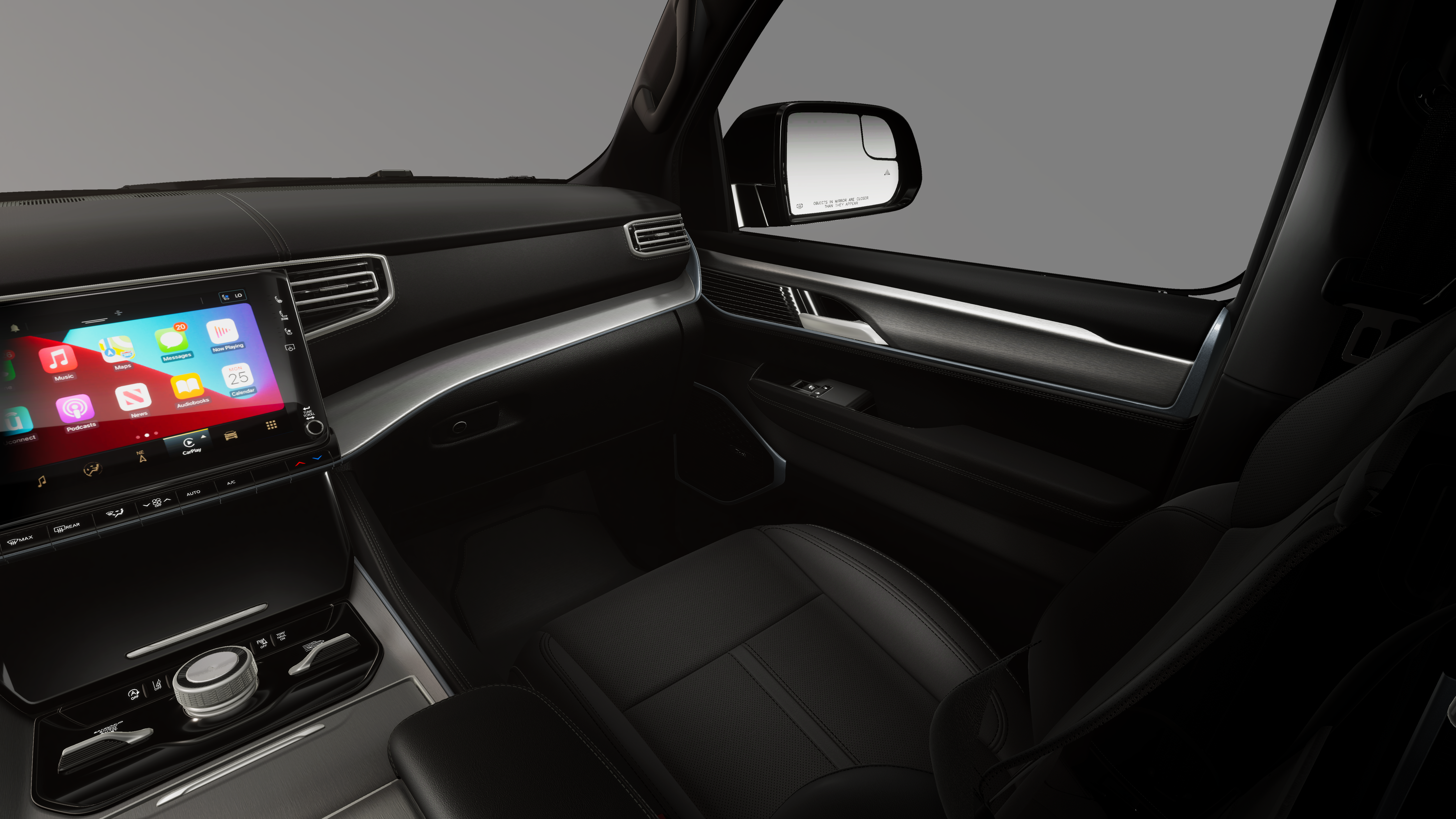 8-Passenger Seating Package (40/20/40 Row Bench Power Tip/Slide, 8-Passenger Seating, and Full Length Floor Console), Black Appearance Package (118 Mph Maximum Speed Calibration, Black Exterior Accents, Titanium Daylight Opening Upper, Titanium Upper Grille Applique, and Wheels: 22 x 9 Painted Gloss Black), Limited Reserve Package, Quick Order Package 29D Reserve (19 Speaker McIntosh Audio System, 2nd Row Manual Window Shades, 3 Panel Sunroof, Augmented HUD, Cargo Cover, Cluster 12 TFT Color Display, Instrument Panel, Interior Rear Facing Camera, Luxury Front and Rear Floor Mats, P and P Park and Unpark Assist with Stop System, Power Deployable Running Boards, Quadra-Lift Air Suspension, Reversible Carpet/Vinyl Cargo Mat, Semi Active Damping, Side Distance Warning, Smartphone as a Key Prep, and Surround View Camera System), 3.55 Rear Axle Ratio, 3rd row seats: bench, 4-Wheel Disc Brakes, 9 Speakers, ABS brakes, Air Conditioning, Alloy wheels, AM/FM radio: SiriusXM with 360L, Anti-whiplash front head restraints, Apple CarPlay/Android Auto, Audio memory, Auto Adjust in Reverse Exterior Mirrors, Auto High-beam Headlights, Auto-dimming door mirrors, Auto-Dimming Exterior Driver Mirror, Auto-dimming Rear-View mirror, Auto-leveling suspension, Automatic temperature control, Brake assist, Bumpers: body-color, Compass, Delay-off headlights, Driver door bin, Driver vanity mirror, Driver's Seat Mounted Armrest, Dual front impact airbags, Dual front side impact airbags, Electronic Stability Control, Emergency communication system: Jeep Connect, Exterior Mirrors Approach Lamps, Exterior Mirrors with Memory, Exterior Mirrors with Supplemental Signals, Exterior Parking Camera Rear, Four wheel independent suspension, Front anti-roll bar, Front Bucket Seats, Front Center Armrest w/Storage, Front dual zone A/C, Front fog lights, Front reading lights, Fully automatic headlights, Garage door transmitter, Heated door mirrors, Heated Exterior Mirrors, Heated front seats, Heated rear seats, Heated steering wheel, Illuminated entry, Knee airbag, Leather Trimmed Bucket Seats, Low tire pressure warning, Manufacturer Statement of Origin, Memory seat, MyFlexCare Service Plan, Navigation System, Normal Duty Suspension, Occupant sensing airbag, Outside temperature display, Overhead airbag, Overhead console, Panic alarm, Passenger door bin, Passenger seat mounted armrest, Passenger vanity mirror, Power door mirrors, Power driver seat, Power Liftgate, Power passenger seat, Power steering, Power windows, Radio data system, Radio: Uconnect 5 Nav with 12.0 Display, Rain sensing wipers, Rear air conditioning, Rear anti-roll bar, Rear reading lights, Rear seat center armrest, Rear window defroster, Rear window wiper, Reclining 3rd row seat, Remote keyless entry, Security system, Speed control, Speed-sensing steering, Speed-Sensitive Wipers, Split folding rear seat, Steering wheel memory, Steering wheel mounted audio controls, Tachometer, Telescoping steering wheel, Tilt steering wheel, Traction control, Trip computer, Turn signal indicator mirrors, Variably intermittent wipers, Ventilated front seats, Ventilated rear seats, Voltmeter, and Wheels: 20 x 9 Aluminum Painted.