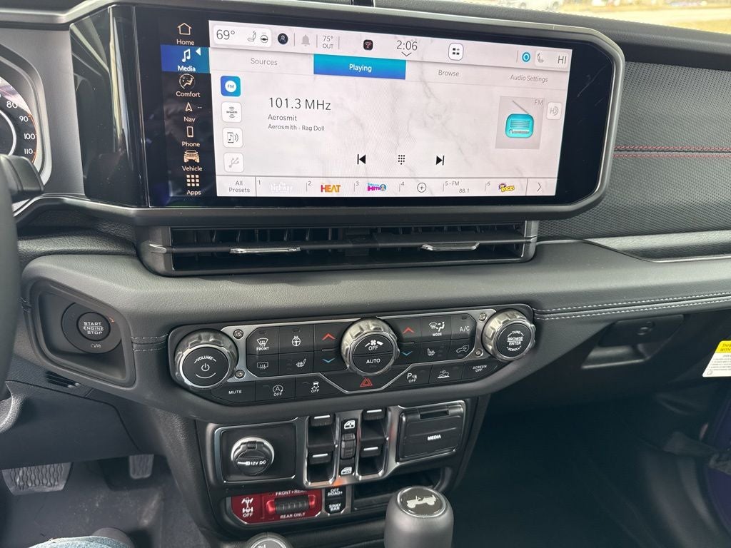 Quick Order Package 23Y Rubicon X (12.3 Touchscreen Display, 4G LTE Wi-Fi Hot Spot, Acoustic Front Seat Area Carpet, Acoustic Laminated Front Door Glass, Alpine Premium Audio System, Apple CarPlay, Auto High Beam Headlamp Control, Auto-Dimming Rear-View Mirror, Blind Spot and Cross Path Detection, Body Color 3-Piece Hard Top, Body Color Rubicon Highline Flare, Connected Travel and Traffic Services, Connectivity - US/Canada, Freedom Panel Storage Bag, Google Android Auto, HD Radio, Heated Front Seats, Heated Steering Wheel, Integrated Off-Road Camera, Integrated Voice Command with Bluetooth®, Leather Wrapped Park Brake Handle, Leather Wrapped Shift Knob, MOPAR Hardtop Headliner, Nappa Leather Seats, No Soft Top, ParkSense Rear Park Assist System, Power 4-Way Driver Lumbar Adjust, Power 4-Way Passenger Lumbar Adjust, Power Adjust 8-Way Driver Seat, Power Adjust 8-Way Front Passenger Seat, Premium Door Trim Panel, Radio: Uconnect 5 Navigation with 12.3 Display, Rear Window Defroster, Rear Window Wiper/Washer, SiriusXM with 360L, Steel Front Bumper, Steel Rear Bumper, and Universal Garage Door Opener), Quick Order Package 24Y Rubicon X, Steel Performance Hood Package (Performance Hood), Trailer Tow Prep Package, 35 Tire Suspension, 4-Wheel Disc Brakes, 8 Speakers, ABS brakes, Air Conditioning, Alloy wheels, AM/FM radio: SiriusXM with 360L, Apple CarPlay/Android Auto, Automatic temperature control, Aux Battery, Auxiliary Switches, Brake assist, Class II Receiver Hitch, Cloth Low-Back Bucket Seats, Compass, Delay-off headlights, Driver door bin, Driver vanity mirror, Dual front impact airbags, Dual front side impact airbags, Electronic Stability Control, Emergency communication system: Jeep Connect, For More Info, Call 800-643-2112, Front anti-roll bar, Front Bucket Seats, Front Center Armrest w/Storage, Front dual zone A/C, Front fog lights, Front License Plate Bracket, Front reading lights, Fully automatic headlights, Heated door mirrors, Illuminated entry, Integrated Center Stack Radio, Integrated roll-over protection, Low tire pressure warning, MOPAR All-Weather Floor Mats, MOPAR Hinge-Gate Reinforcement, Myflexcare Service Plan, Non-Lock Fuel Cap Without Discriminator, Occupant sensing airbag, Outside temperature display, Overhead airbag, Panic alarm, ParkView Rear Back-Up Camera, Passenger door bin, Passenger vanity mirror, Performance Suspension, Power door mirrors, Power steering, Power windows, Radio data system, Radio: Uconnect 5 with 12.3 Display, Rear anti-roll bar, Rear reading lights, Remote keyless entry, Security system, SiriusXM Radio Service, Speed control, Split folding rear seat, Steering wheel mounted audio controls, Stop-Start Dual Battery System, Tachometer, Telescoping steering wheel, Tilt steering wheel, Traction control, Trip computer, Variably intermittent wipers, Voltmeter, Warn Winch, Wheels: 17 x 7.5 Machined/Painted Black, and Wheels: 17 x 8 Machined with Black Pockets.