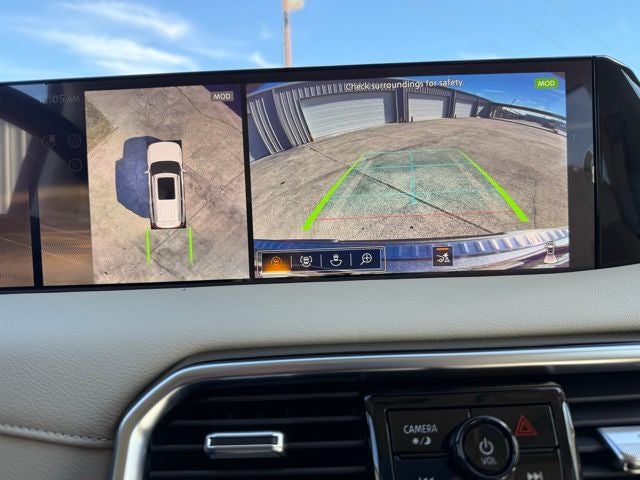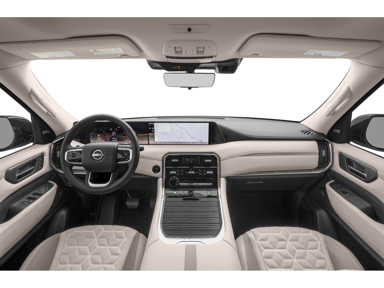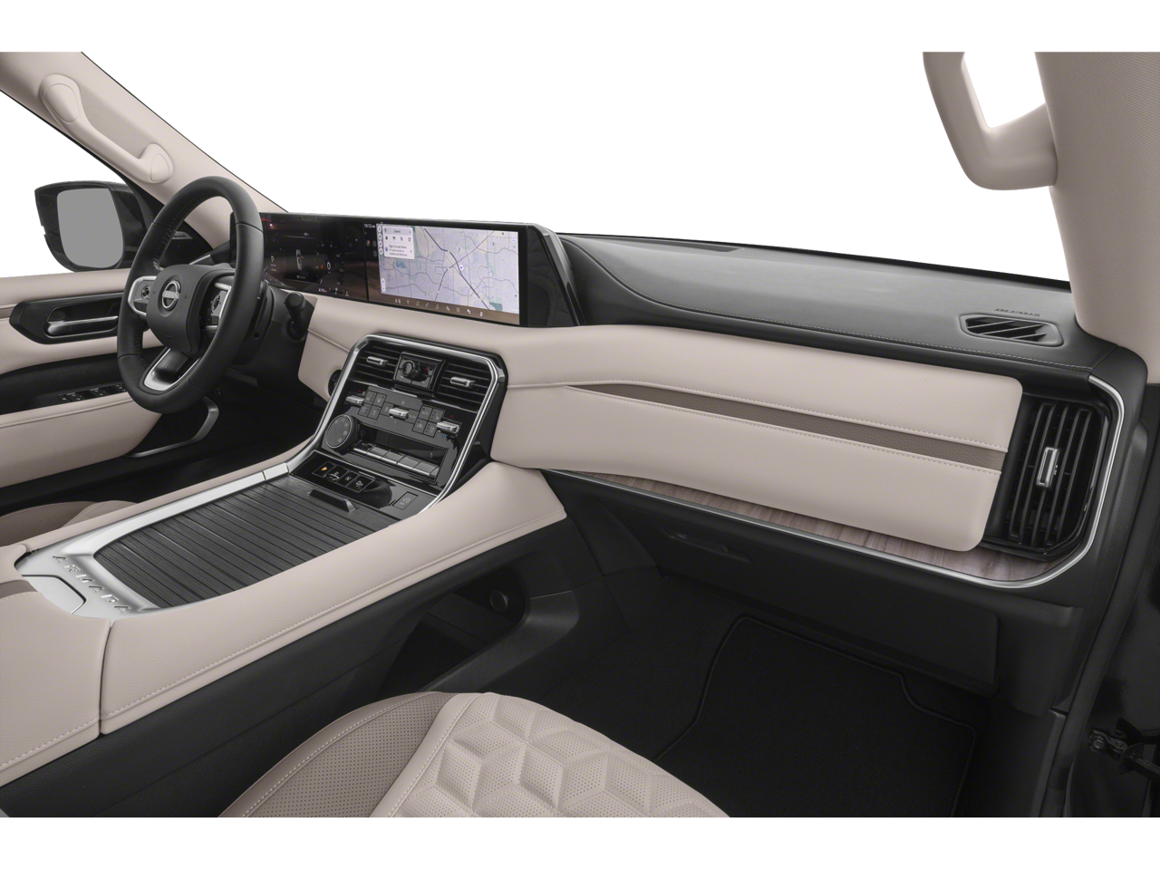 Convenience Package, 12 Speakers, 3rd row seats: split-bench, 4-Wheel Disc Brakes, ABS brakes, Air Conditioning, Alloy wheels, AM/FM radio: SiriusXM w/360L, Anti-whiplash front head restraints, Apple CarPlay/Android Auto, Auto High-beam Headlights, Auto tilt-away steering wheel, Auto-dimming door mirrors, Auto-dimming Rear-View mirror, Auto-leveling suspension, Automatic temperature control, Brake assist, Bumpers: body-color, Carpeted Floor Mats with Captain Chairs, Center Front Spoiler, Climate Controlled Heated and Ventilated Front Seats, Compass, Cross Bars, Delay-off headlights, Driver door bin, Driver vanity mirror, Dual front impact airbags, Dual front side impact airbags, Electronic Stability Control, Emergency communication system: NissanConnect Services, External Ground Lighting, Four wheel independent suspension, Front anti-roll bar, Front Bucket Seats, Front Center Armrest, Front dual zone A/C, Front fog lights, Front reading lights, Fully automatic headlights, Garage door transmitter: HomeLink, Genuine wood dashboard insert, Heated door mirrors, Heated front seats, Heated rear seats, Heated steering wheel, HVAC memory, Illuminated entry, Illuminated Kick Plates, Illuminated Scuff Plates, Knee airbag, Leather steering wheel, Low tire pressure warning, Memory seat, Navigation system: Google Maps, Occupant sensing airbag, Outside temperature display, Overhead airbag, Overhead console, Panic alarm, Panoramic Headliner Illumination, Passenger door bin, Passenger vanity mirror, Power door mirrors, Power driver seat, Power Liftgate, Power moonroof, Power passenger seat, Power steering, Power windows, Quilted Leather Seat Trim, Radio: NissanConnect with SiriusXM 360L, Rain sensing wipers, Rear air conditioning, Rear anti-roll bar, Rear Bumper Protector, Rear reading lights, Rear window defroster, Rear window wiper, Reclining 3rd row seat, Remote keyless entry, Security system, Speed control, Speed-sensing steering, Speed-Sensitive Wipers, Splash Guards, Split folding rear seat, Spoiler, Steering wheel memory, Steering wheel mounted audio controls, Tachometer, Telescoping steering wheel, Tilt steering wheel, Traction control, Trip computer, Turn signal indicator mirrors, Variably intermittent wipers, Ventilated front seats, Voltmeter, and Wheels: 20 x 8.5J Machined and Painted Alloy.