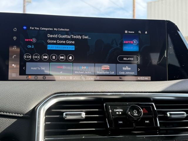 - Radio: NissanConnect w/SiriusXM 360L -inc: 12 speakers Klipsch premium audio system, 12.3" center touch-screen display, wireless Apple CarPlay and Android Auto, Google built-in data services (including Google Assistant, Google Playstore, and Google Maps), Bluetooth® hands-free phone system, Siri Eyes Free, hybrid radio, 5G capability, 2 USB type-C connection ports in front, Amazon Alexa w/Hotword, voice recognition and system controlled navigation w/traffic information