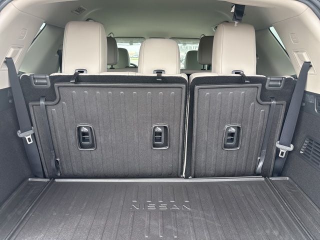 Cargo Package (Cargo Area Protector, Cargo Net, and First Aid), 18 Machined Alloy Wheels, 3rd row seats: bench, 4-Piece Black Splash Guards, 4-Wheel Disc Brakes, 6 Speakers, ABS brakes, Air Conditioning, Alloy wheels, AM/FM radio: SiriusXM w/360L, Auto High-beam Headlights, Auto-dimming Rear-View mirror, Automatic temperature control, Bench Seat Carpeted Floor Mats, Brake assist, Bumpers: body-color, Cross Bars, Delay-off headlights, Driver door bin, Driver vanity mirror, Dual front impact airbags, Dual front side impact airbags, Electronic Stability Control, Emergency communication system: NissanConnect Services, Four wheel independent suspension, Front anti-roll bar, Front Bucket Seats, Front Center Armrest, Front dual zone A/C, Front reading lights, Fully automatic headlights, Garage door transmitter: HomeLink, Heated door mirrors, Heated Front Bucket Seats, Heated front seats, Heated steering wheel, Illuminated entry, Knee airbag, Low tire pressure warning, NissanConnect featuring Apple CarPlay and Android Auto, Occupant sensing airbag, Outside temperature display, Overhead airbag, Overhead console, Panic alarm, Passenger door bin, Passenger vanity mirror, Power door mirrors, Power driver seat, Power Liftgate, Power steering, Power windows, Radio data system, Radio: AM/FM Audio System with NissanConnect, Rear air conditioning, Rear anti-roll bar, Rear reading lights, Rear seat center armrest, Rear side impact airbag, Rear window defroster, Rear window wiper, Reclining 3rd row seat, Remote keyless entry, Security system, Speed control, Speed-sensing steering, Split folding rear seat, Spoiler, Steering wheel mounted audio controls, Tachometer, TailorFit Appointed Seating Surfaces, Telescoping steering wheel, Tilt steering wheel, Traction control, Trip computer, Turn signal indicator mirrors, and Variably intermittent wipers. Price includes: $3500 - Nissan Customer Cash. Exp. 05/04/2026
