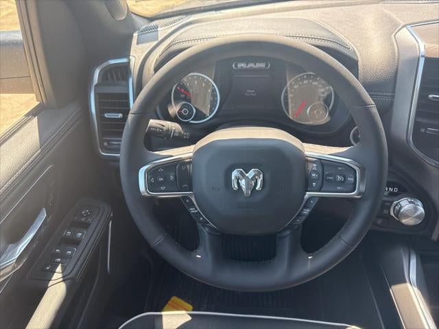 Laramie Level 1 Equipment Group (Rain Sensitive Windshield Wipers and Remote Tailgate Release), Laramie Southwest Edition (Accent Color Premium Power Mirrors, Auto Power-Folding Mirrors, Auto-Dimming Exterior Driver Mirror, Black Painted Exterior Mirrors Caps, Body Color Front Bumper, Body Color Rear Bumper with Step Pads, Convex Wide-Angle Exterior Mirror Insert, Dome Dual LED Reading Lamp, Dual-Pane Panoramic Sunroof, Exterior Mirrors Courtesy Lamps, Exterior Mirrors with Heating Element, Exterior Mirrors with Memory, Exterior Mirrors with Supplemental Signals, Grille Surround 3 Body Color Tex 4 Chrome, LED Dome/Reading Lamp, MOPAR Lockable Console Storage, Power Deployable Running Boards, RAM Grille Badge - Chrome, Tow Hooks, and Trailer Brake Control), Quick Order Package 21H Laramie, 10 Speakers, 4-Wheel Disc Brakes, 4G LTE Wi-Fi Hot Spot, ABS brakes, Active Noise Control System, Air Conditioning, Alloy wheels, AM/FM radio: SiriusXM with 360L, Apple CarPlay/Android Auto, Audio memory, Auto High-beam Headlights, Auto-dimming door mirrors, Auto-dimming Rear-View mirror, Automatic temperature control, Brake assist, Bumpers: chrome, Chrome Exterior Mirrors, Compass, Connected Travel and Traffic Services, Connectivity - US/Canada, Delay-off headlights, Driver door bin, Driver vanity mirror, Dual front impact airbags, Dual front side impact airbags, Electronic Stability Control, Front anti-roll bar, Front Bucket Seats, Front Center Armrest w/Storage, Front dual zone A/C, Front fog lights, Front License Plate Bracket, Front reading lights, Front wheel independent suspension, Fully automatic headlights, Garage door transmitter, GPS Navigation, Heated door mirrors, Heated front seats, Heated rear seats, Heated steering wheel, Illuminated entry, Integrated Center Stack Radio, Integrated Voice Command with Bluetooth®, Leather steering wheel, Leather Trimmed Bucket Seats, Low tire pressure warning, Memory seat, MOPAR Front and Rear Rubber Floor Mats, Navigation System, Occupant sensing airbag, Off-Road Information Pages, Outside temperature display, Overhead airbag, Overhead console, Panic alarm, ParkView Rear Back-Up Camera, Passenger door bin, Passenger vanity mirror, Power door mirrors, Power driver seat, Power passenger seat, Power steering, Power windows, Radio data system, Radio: Uconnect 5 Navigation with 12.0 Display, Rear anti-roll bar, Rear reading lights, Rear seat center armrest, Rear step bumper, Remote keyless entry, Security system, SiriusXM Radio Service, SiriusXM with 360L, Speed control, Split folding rear seat, Steering wheel mounted audio controls, Tachometer, Telescoping steering wheel, Tilt steering wheel, Traction control, Trip computer, Turn signal indicator mirrors, USB Host Flip, Variably intermittent wipers, Ventilated front seats, Voltmeter, and Wheels: 20 x 9 Premium Paint/Polish.