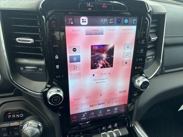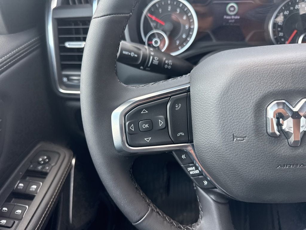 Laramie Level 1 Equipment Group (Rain Sensitive Windshield Wipers and Remote Tailgate Release), Laramie Southwest Edition (Accent Color Premium Power Mirrors, Auto Power-Folding Mirrors, Auto-Dimming Exterior Driver Mirror, Black Painted Exterior Mirrors Caps, Body Color Front Bumper, Body Color Rear Bumper with Step Pads, Convex Wide-Angle Exterior Mirror Insert, Dome Dual LED Reading Lamp, Dual-Pane Panoramic Sunroof, Exterior Mirrors Courtesy Lamps, Exterior Mirrors with Heating Element, Exterior Mirrors with Memory, Exterior Mirrors with Supplemental Signals, Grille Surround 3 Body Color Tex 4 Chrome, LED Dome/Reading Lamp, MOPAR Lockable Console Storage, Power Deployable Running Boards, RAM Grille Badge - Chrome, Tow Hooks, and Trailer Brake Control), Quick Order Package 21H Laramie, 10 Speakers, 4-Wheel Disc Brakes, 4G LTE Wi-Fi Hot Spot, ABS brakes, Active Noise Control System, Adjustable pedals, Air Conditioning, Alloy wheels, AM/FM radio: SiriusXM with 360L, Apple CarPlay/Android Auto, Audio memory, Auto High-beam Headlights, Auto-dimming door mirrors, Auto-dimming Rear-View mirror, Automatic temperature control, Brake assist, Bumpers: chrome, Chrome Exterior Mirrors, Compass, Connected Travel and Traffic Services, Connectivity - US/Canada, Delay-off headlights, Driver door bin, Driver vanity mirror, Dual front impact airbags, Dual front side impact airbags, Electronic Stability Control, Front anti-roll bar, Front Bucket Seats, Front Center Armrest w/Storage, Front dual zone A/C, Front fog lights, Front License Plate Bracket, Front reading lights, Front wheel independent suspension, Fully automatic headlights, Garage door transmitter, GPS Navigation, Heated door mirrors, Heated front seats, Heated rear seats, Heated steering wheel, Illuminated entry, Integrated Center Stack Radio, Integrated Voice Command with Bluetooth®, Leather steering wheel, Leather Trimmed Bucket Seats, Low tire pressure warning, Memory seat, MOPAR Front and Rear Rubber Floor Mats, Navigation System, Occupant sensing airbag, Off-Road Information Pages, Outside temperature display, Overhead airbag, Overhead console, Panic alarm, ParkView Rear Back-Up Camera, Passenger door bin, Passenger vanity mirror, Pedal memory, Power door mirrors, Power driver seat, Power passenger seat, Power steering, Power windows, Radio data system, Radio: Uconnect 5 Navigation with 12.0 Display, Rear anti-roll bar, Rear reading lights, Rear seat center armrest, Rear step bumper, Remote keyless entry, Security system, SiriusXM Radio Service, SiriusXM with 360L, Speed control, Split folding rear seat, Steering wheel mounted audio controls, Tachometer, Telescoping steering wheel, Tilt steering wheel, Traction control, Trip computer, Turn signal indicator mirrors, USB Host Flip, Variably intermittent wipers, Ventilated front seats, Voltmeter, and Wheels: 20 x 9 Premium Paint/Polish.