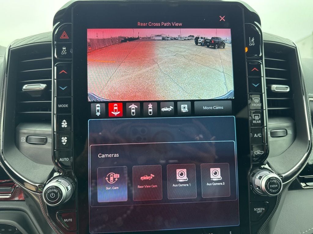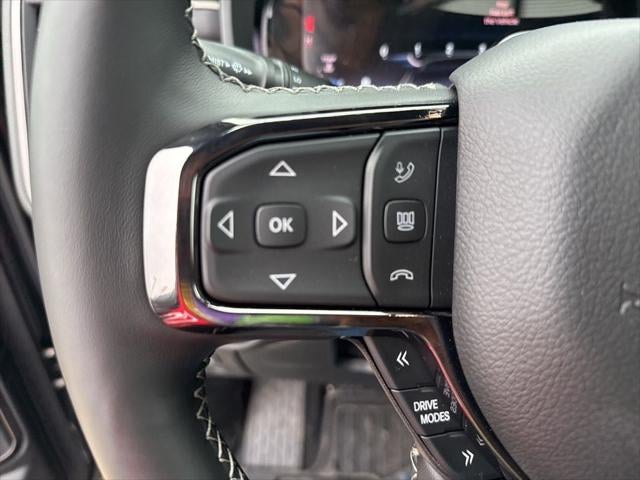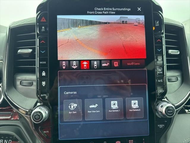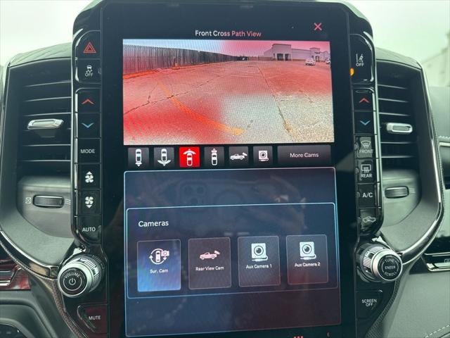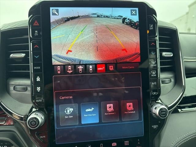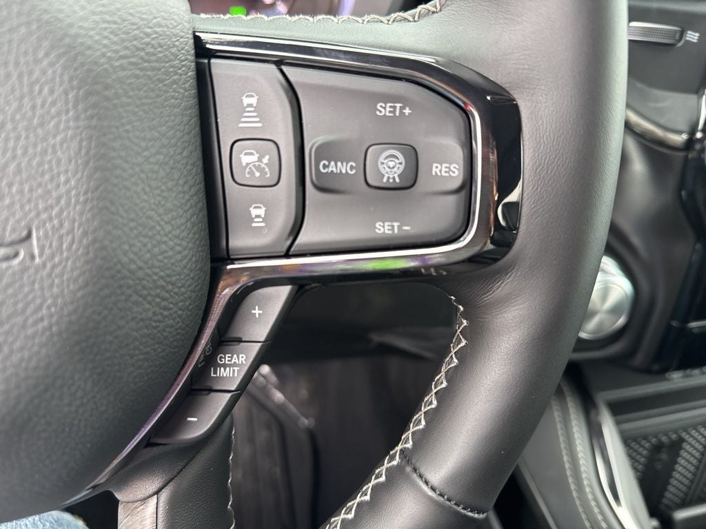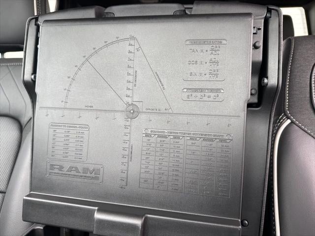 Limited Level An Equipment Group (12-Way/1-Way Trailer Connector, 14.4 Touchscreen Display, 240 Amp Alternator, 4G LTE Wi-Fi Hot Spot, Apple CarPlay, Connected Travel and Traffic Services, Connectivity - US/Canada, Disassociated Touchscreen Display, Drowsy Driver Detection, Evasive Steer Assist, Exterior 115V AC Outlet, Global Telematics Box Module, Google Android Auto, GPS Antenna Input, GPS Navigation, Hands-Free Active Driving Assist System, HD Radio, Heads-Up Display, Integrated Center Stack Radio, Integrated Voice Command with Bluetooth®, Intersection Collision Assist System, LED CHMSL Lamp, Radio: Uconnect 5 Nav with 14.4 Display, RamBox Cargo Management System, SiriusXM Radio Service, SiriusXM with 360L, Smartphone as a Key Capable, Surround View Camera System, Traffic Sign Recognition, Tri-Fold Tonneau Cover, and USB Host Flip), Night Edition (Accent Color Door Handles, Accent Color Premium Power Mirrors, Accent Color Tailgate Handle, Auto Power-Folding Mirrors, Auto-Dimming Exterior Driver Mirror, Black Day Light Opening Moldings, Black Exterior Truck Badging, Black Grille Surround Texture 7 Black, Black Headlamp Bezels, Black Painted Exterior Mirrors Caps, Black Tail Lamp Bezels, Body Color Front Bumper, Body Color Rear Bumper with Step Pads, Convex Wide-Angle Exterior Mirror Insert, Dual Exhaust with Black Tips, Exterior Mirrors Courtesy Lamps, Exterior Mirrors with Heating Element, Exterior Mirrors with Memory, Exterior Mirrors with Supplemental Signals, Pirelli Brand Tires, RAM Grille Badge - Black, Sport Performance Hood, and Wheels: 22 x 9 Premium Black Aluminum), Quick Order Package 22M Limited, 19 Speakers, 3.92 Rear Axle Ratio, 4-Wheel Disc Brakes, ABS brakes, Active Noise Control System, Adjustable pedals, Air Conditioning, Alloy wheels, AM/FM radio, Apple CarPlay/Android Auto, Audio memory, Auto High-beam Headlights, Auto-dimming door mirrors, Auto-dimming Rear-View mirror, Auto-leveling suspension, Automatic temperature control, Bodyside moldings, Brake assist, Bumpers: chrome, Chrome Exterior Mirrors, Compass, Delay-off headlights, Dome Dual LED Reading Lamp, Driver door bin, Driver vanity mirror, Dual front impact airbags, Dual front side impact airbags, Dual-Pane Panoramic Sunroof, Electronic Stability Control, Exterior Parking Camera Rear, Front anti-roll bar, Front Bucket Seats, Front Center Armrest w/Storage, Front dual zone A/C, Front fog lights, Front License Plate Bracket, Front reading lights, Front wheel independent suspension, Fully automatic headlights, Garage door transmitter, Genuine wood console insert, Genuine wood dashboard insert, Genuine wood door panel insert, Heated door mirrors, Heated front seats, Heated rear seats, Heated steering wheel, Illuminated entry, Leather steering wheel, LED Dome/Reading Lamp, Low tire pressure warning, Memory seat, MyFlexCare Service Plan, Navigation System, Occupant sensing airbag, Outside temperature display, Overhead airbag, Overhead console, Panic alarm, Passenger door bin, Passenger vanity mirror, Pedal memory, Power door mirrors, Power driver seat, Power passenger seat, Power steering, Power windows, Premium Quilted Leather Bucket Seats, Radio data system, Radio: Uconnect 5 Navigation with 12.0 Display, Rain sensing wipers, Rear anti-roll bar, Rear reading lights, Rear seat center armrest, Rear step bumper, Rear window defroster, Remote keyless entry, Security system, Speed control, Split folding rear seat, Steering wheel mounted audio controls, Tachometer, Telescoping steering wheel, Tilt steering wheel, Traction control, Trip computer, Turn signal indicator mirrors, Variably intermittent wipers, Ventilated front seats, Ventilated rear seats, Voltmeter, and Wheels: 20 x 9 Premium Paint/Polished.