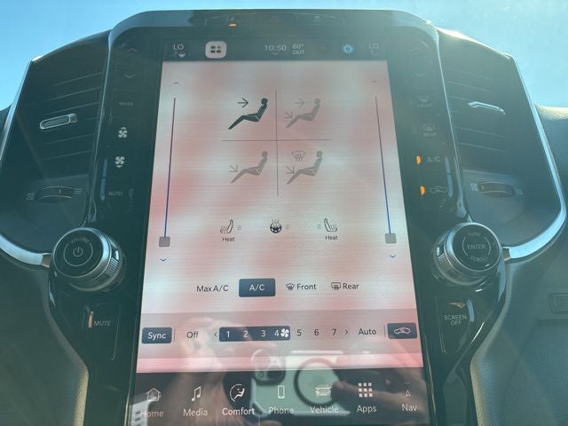 Big Horn Level 2 Plus Equipment Group (115-Volt Auxiliary Front Power Outlet, 115V Auxiliary Rear Power Outlet, 12 Touchscreen Display, 2 Way Rear Headrest Seat, 2nd Row in Floor Storage Bins, 4 Way Front Headrests, 400W Inverter, 4G LTE Wi-Fi Hot Spot, 9 Alpine Speakers with Subwoofer, Active Lane Management System, Adaptive Steering System, Air Conditioning ATC with Dual Zone Control, Alexa Built-in, Anti-Spin Differential Rear Axle, Apple CarPlay, Auto High Beam Headlamp Control, Auto Power-Folding Mirrors, Auto-Dimming Rear-View Mirror, Black Exterior Mirrors, Blind Spot and Cross Path Detection, Bucket Seats, Center Stop Lamp with Cargo View Camera, Cluster 7.0 TFT Color Display, Connected Travel and Traffic Services, Connectivity - US/Canada, Dampened Tailgate, Disassociated Touchscreen Display, Drowsy Driver Detection, Dual Glove Boxes, Dual Wireless Charging Pad, Emergency Vehicle Alert System (EVAS), Exterior 115V AC Outlet, Exterior Mirrors Courtesy Lamps, Exterior Mirrors with Heating Element, Exterior Mirrors with Supplemental Signals, Foam Bottle Insert (door Trim Panel), Folding Flat Load Floor Storage, Footwell Courtesy Lamp, For Details, Visit DriveUconnect.com, For More Info, Call 800-643-2112, Forward and Reverse Utility Lights, Front Seat Back Map Pockets, Full Length Upgraded Floor Console, Global Telematics Box Module, Glove Box Lamp, Google Android Auto, GPS Antenna Input, GPS Navigation, HD Radio, Heated Front Seats, Heated Steering Wheel, Integrated Voice Command with Bluetooth®, LED Bed Lighting, LED Tail Lamps, Locking Lower Glove Box, Luxury Steering Wheel, Manual Adjust 4-Way Front Passenger Seat, Media Hub with 2 Charge Only USBs, Mirror Running Lights, MOPAR Deployable Bed Step, MOPAR Spray in Bedliner, MOPAR Trailer Camera Wiring with No Camera, Off-Road Info Pages, Power 2-Way Driver Lumbar Adjust, Power Adjust 8-Way Driver Seat, Power Adjust Mirrors, Power Adjustable Pedals, Power Heated Folding Telescopic Mirrors, Power Telescoping Mirrors, Power-Adjustable Convex Aux Mirrors, Premium Cloth Bucket Seats, Radio: Uconnect 5 Navigation with 12.0 Display, Rain Sensitive Windshield Wipers, Rear 60/40 Folding Seat, Rear Dome with on/Off Switch Lamp, Rear Power Sliding Window, Red Tail Lamp Bezels, Remote Start System, Selectable Tire Fill Alert, SiriusXM Radio Service, SiriusXM with 360L, Steering Wheel Mounted Audio Controls, Sun Visors with Illuminated Vanity Mirrors, Surround View Camera System, Traffic Sign Recognition, Trailer Reverse Guidance, Trailer Tire Pressure Monitoring System, Trailer Tow Pages, and Universal Garage Door Opener), Night Edition (Black Exterior Truck Badging, Black Interior Accents, Black Wheel Center Hub, Body Color Grille-Surround, Gloss Black Nostrils/Mic Black Grille, Painted Front Bumper, Painted Rear Bumper, and Wheels: 20 x 8.0 Black Painted Aluminum), on Board Power System - 2.4KW, Quick Order Package 24Z Big Horn, 4-Wheel Disc Brakes, 40/20/40 Split Bench Seat, 5th Wheel/Gooseneck Towing Prep Group, 6 Speakers, ABS brakes, Air Conditioning, Alloy wheels, AM/FM radio: SiriusXM, Apple CarPlay/Android Auto, Brake assist, Bumpers: chrome, Center Hub, Clearance Lamps, Cloth 40/20/40 Bench Seat, Compass, Dash Pass Thru Wire Circuits, Delay-off headlights, Driver door bin, Dual Alternators Rated At 480 Amps, Dual front impact airbags, Dual front side impact airbags, Electronic Stability Control, Front anti-roll bar, Front Armrest with Cupholders, Front Center Armrest w/Storage, Front fog lights, Front License Plate Bracket, Front reading lights, Fully automatic headlights, Heated door mirrors, Illuminated entry, Instrument Panel Mounted Auxiliary Switches, Low tire pressure warning, Manual Adjust 4-Way Driver Seat, MOPAR Front and Rear Rubber Floor Mats, MyFlexCare Service Diesel, Occupant sensing airbag, Outside temperature display, Overhead airbag, Overhead console, Panic alarm,