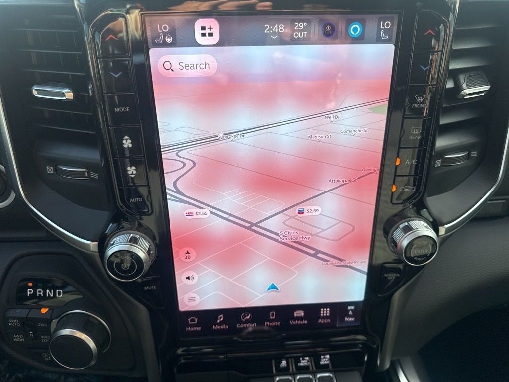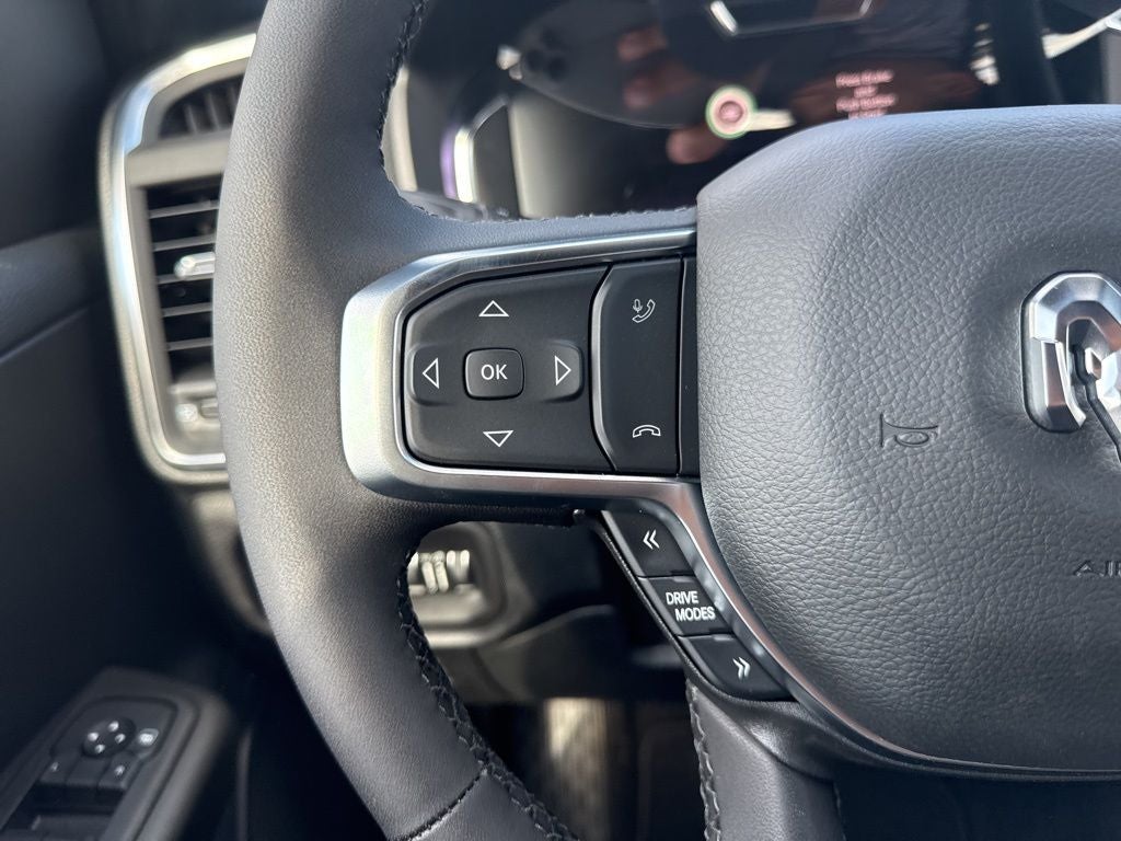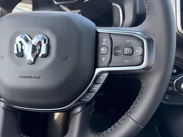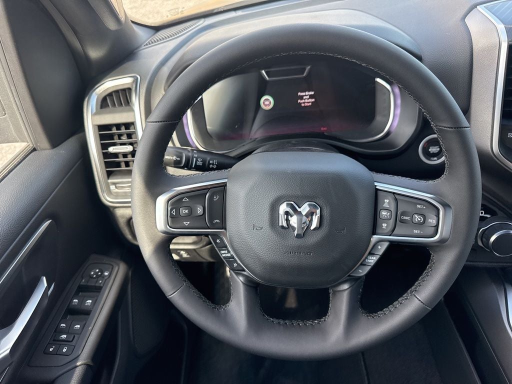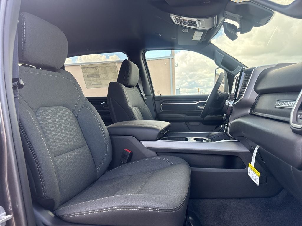 Big Horn Level 2 Equipment Group (115V Auxiliary Power Outlet, 115V Auxiliary Rear Power Outlet, 12 Touchscreen Display, 2nd Row in Floor Storage Bins, 3 Rear Seat Head Restraints, 4 Way Front Headrests, 400W Inverter, 4G LTE Wi-Fi Hot Spot, 9 Amplified Speakers with Subwoofer, Air Conditioning ATC with Dual Zone Control, Apple CarPlay, Auto Power-Folding Mirrors, Auto-Dimming Exterior Driver Mirror, Auto-Dimming Rear-View Mirror, Black Exterior Mirrors, Black Premium Power Mirrors, Body Color Fender Flares, Bucket Seats, Center Console Parts Module, Cluster 7.0 TFT Color Display, Configurable Drive Mode, Connected Travel and Traffic Services, Connectivity - US/Canada, Convex Wide-Angle Exterior Mirror Insert, Deluxe Cloth Bucket Seats, Disassociated Touchscreen Display, Exterior Mirrors Courtesy Lamps, Exterior Mirrors with Heating Element, Exterior Mirrors with Supplemental Signals, Front Seat Back Map Pockets, Full Length Floor Console, Global Telematics Box Module, Glove Box Lamp, Google Android Auto, GPS Antenna Input, GPS Navigation, HD Radio, Heated Front Seats, Heated Steering Wheel, Integrated Center Stack Radio, Integrated Voice Command with Bluetooth®, Leather Wrapped Steering Wheel, LED Dome Lamp with on/Off Switch, LED Footwell Lighting, Manual Adjust 4-Way Front Passenger Seat, Media Hub with 2 Charge Only USBs, Overhead LED Lamps, Power 2-Way Driver Lumbar Adjust, Power Adjust 8-Way Driver Seat, Power Adjustable Pedals, Premium Overhead Console, Radio: Uconnect 5 Navigation with 12.0 Display, Rear 60/40 Folding Seat, Rear Center Armrest, Rear Power Sliding Window, Rear Window Defroster, Remote Tailgate Release, Security Alarm, SiriusXM Radio Service, SiriusXM with 360L, Steering Wheel Mounted Audio Controls, Sun Visors with Illuminated Vanity Mirrors, Universal Garage Door Opener, and USB Host Flip), Night Edition (Accent Color Door Handles, Accent Color Premium Power Mirrors, Accent Color Tailgate Handle, Anti-Spin Differential Rear Axle, Black Exterior Truck Badging, Black Headlamp Bezels, Black Interior Accents, Black Painted Exterior Mirrors Caps, Black Tail Lamp Bezels, Body Color Front Bumper, Body Color Rear Bumper with Step Pads, Dual Exhaust with Black Tips, Grille Black Surround Black Mesh, RAM Grille Badge - Black, and Wheels: 20 x 9.0 Aluminum Painted Clad), Quick Order Package 27Z Big Horn, Trailer Tow Group (Black Trailer Tow Power Mirrors, Manual Folding Exterior Mirrors, Manuarl Telescoping Mirrors, Mirror Clearance/Running Lights, Power-Adjustable Convex Aux Mirrors, Trailer Brake Control, Trailer Reverse Steering Control, Trailer Tire Pressure Monitoring System, and Trailer Tow Mirrors), 4-Wheel Disc Brakes, 48V Belt Starter Generator, 6 Speakers, ABS brakes, Air Conditioning, Alloy wheels, AM/FM radio, Apple CarPlay/Android Auto, Auto High-beam Headlights, Brake assist, Bumpers: chrome, Cloth Bucket Seats, Cluster 12 TFT Color Display, Compass, Delay-off headlights, Driver door bin, Dual front impact airbags, Dual front side impact airbags, Electronic Stability Control, Front anti-roll bar, Front Bucket Seats, Front Center Armrest w/Storage, Front fog lights, Front License Plate Bracket, Front reading lights, Front wheel independent suspension, Fully automatic headlights, Heated door mirrors, Illuminated entry, Low tire pressure warning, Manual Adjust 4-Way Driver Seat, MyFlexCare Service Plan, Occupant sensing airbag, Outside temperature display, Overhead airbag, Overhead console, Panic alarm, ParkView Rear Back-Up Camera, Passenger door bin, Passenger vanity mirror, Power door mirrors, Power steering, Power windows, Radio data system, Radio: Uconnect 5 W with 8.4 Display, RAM Grille Badge - Chrome, Rear anti-roll bar, Rear step bumper, Rear Underseat Compartment Storage, Rear Wheelhouse Liners, Remote keyless entry, Speed control, Supplier Par