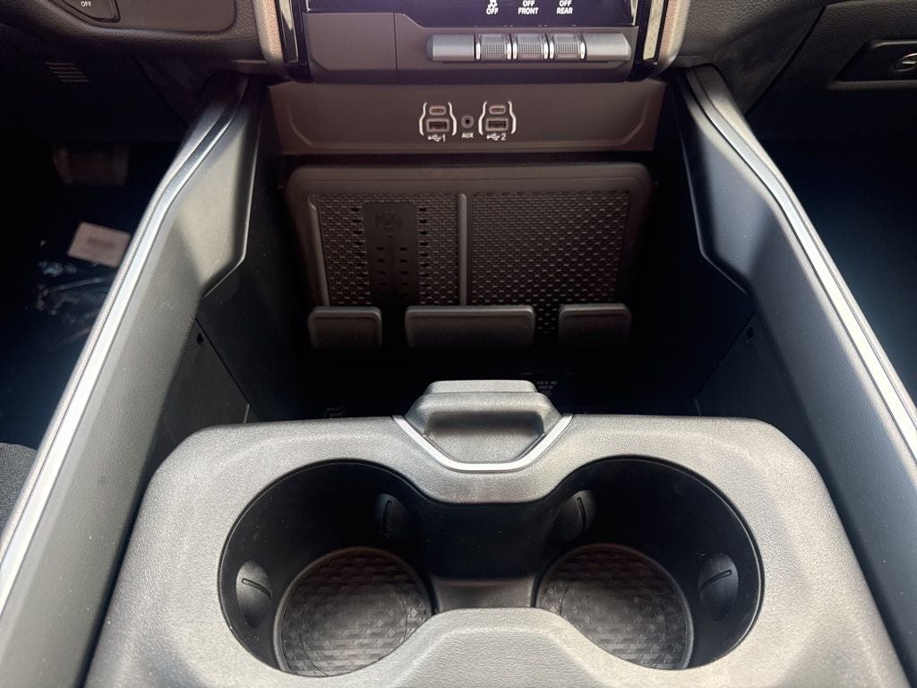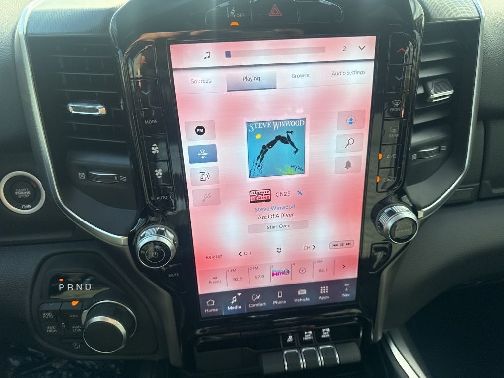 Big Horn Level 2 Equipment Group (115V Auxiliary Power Outlet, 115V Auxiliary Rear Power Outlet, 12 Touchscreen Display, 2nd Row in Floor Storage Bins, 3 Rear Seat Head Restraints, 4 Way Front Headrests, 400W Inverter, 4G LTE Wi-Fi Hot Spot, 9 Amplified Speakers with Subwoofer, Air Conditioning ATC with Dual Zone Control, Apple CarPlay, Auto Power-Folding Mirrors, Auto-Dimming Exterior Driver Mirror, Auto-Dimming Rear-View Mirror, Black Exterior Mirrors, Black Premium Power Mirrors, Body Color Fender Flares, Bucket Seats, Center Console Parts Module, Cluster 7.0 TFT Color Display, Configurable Drive Mode, Connected Travel and Traffic Services, Connectivity - US/Canada, Convex Wide-Angle Exterior Mirror Insert, Deluxe Cloth Bucket Seats, Disassociated Touchscreen Display, Exterior Mirrors Courtesy Lamps, Exterior Mirrors with Heating Element, Exterior Mirrors with Supplemental Signals, Front Seat Back Map Pockets, Full Length Floor Console, Global Telematics Box Module, Glove Box Lamp, Google Android Auto, GPS Antenna Input, GPS Navigation, HD Radio, Heated Front Seats, Heated Steering Wheel, Integrated Center Stack Radio, Integrated Voice Command with Bluetooth®, Leather Wrapped Steering Wheel, LED Dome Lamp with on/Off Switch, LED Footwell Lighting, Manual Adjust 4-Way Front Passenger Seat, Media Hub with 2 Charge Only USBs, Overhead LED Lamps, Power 2-Way Driver Lumbar Adjust, Power Adjust 8-Way Driver Seat, Power Adjustable Pedals, Premium Overhead Console, Radio: Uconnect 5 Navigation with 12.0 Display, Rear 60/40 Folding Seat, Rear Center Armrest, Rear Power Sliding Window, Rear Window Defroster, Remote Tailgate Release, Security Alarm, SiriusXM Radio Service, SiriusXM with 360L, Steering Wheel Mounted Audio Controls, Sun Visors with Illuminated Vanity Mirrors, Universal Garage Door Opener, and USB Host Flip), Night Edition (Accent Color Door Handles, Accent Color Premium Power Mirrors, Accent Color Tailgate Handle, Anti-Spin Differential Rear Axle, Black Exterior Truck Badging, Black Headlamp Bezels, Black Interior Accents, Black Painted Exterior Mirrors Caps, Black Tail Lamp Bezels, Body Color Front Bumper, Body Color Rear Bumper with Step Pads, Dual Exhaust with Black Tips, Grille Black Surround Black Mesh, RAM Grille Badge - Black, and Wheels: 20 x 9.0 Aluminum Painted Clad), Quick Order Package 27Z Big Horn, 4-Wheel Disc Brakes, 48V Belt Starter Generator, 6 Speakers, ABS brakes, Air Conditioning, Alloy wheels, AM/FM radio, Apple CarPlay/Android Auto, Auto High-beam Headlights, Brake assist, Bumpers: chrome, Cloth Bucket Seats, Compass, Delay-off headlights, Driver door bin, Dual front impact airbags, Dual front side impact airbags, Electronic Stability Control, Front anti-roll bar, Front Bucket Seats, Front Center Armrest w/Storage, Front fog lights, Front reading lights, Front wheel independent suspension, Fully automatic headlights, Heated door mirrors, Illuminated entry, Low tire pressure warning, Manual Adjust 4-Way Driver Seat, Manual Folding Exterior Mirrors, MyFlexCare Service Plan, Occupant sensing airbag, Outside temperature display, Overhead airbag, Overhead console, Panic alarm, ParkView Rear Back-Up Camera, Passenger door bin, Passenger vanity mirror, Power door mirrors, Power steering, Power windows, Radio data system, Radio: Uconnect 5 W with 8.4 Display, RAM Grille Badge - Chrome, Rear anti-roll bar, Rear step bumper, Rear Wheelhouse Liners, Remote keyless entry, Speed control, Supplier Part Tracking (J-1), Tachometer, Telescoping steering wheel, Tilt steering wheel, Traction control, Trailer Brake Control, Trip computer, Variably intermittent wipers, and Voltmeter.