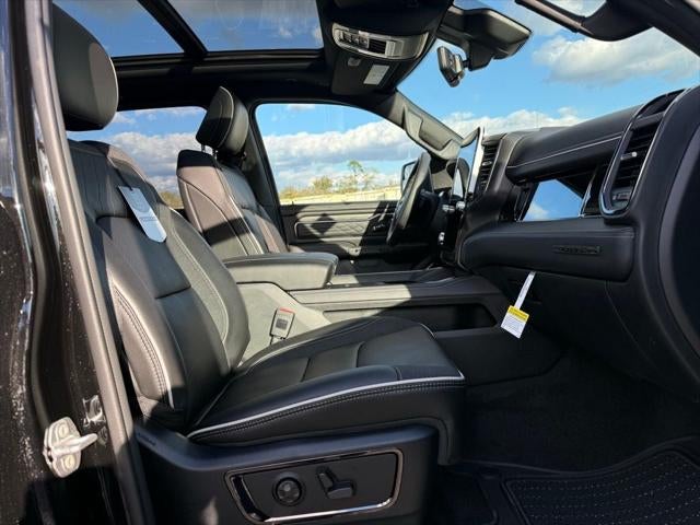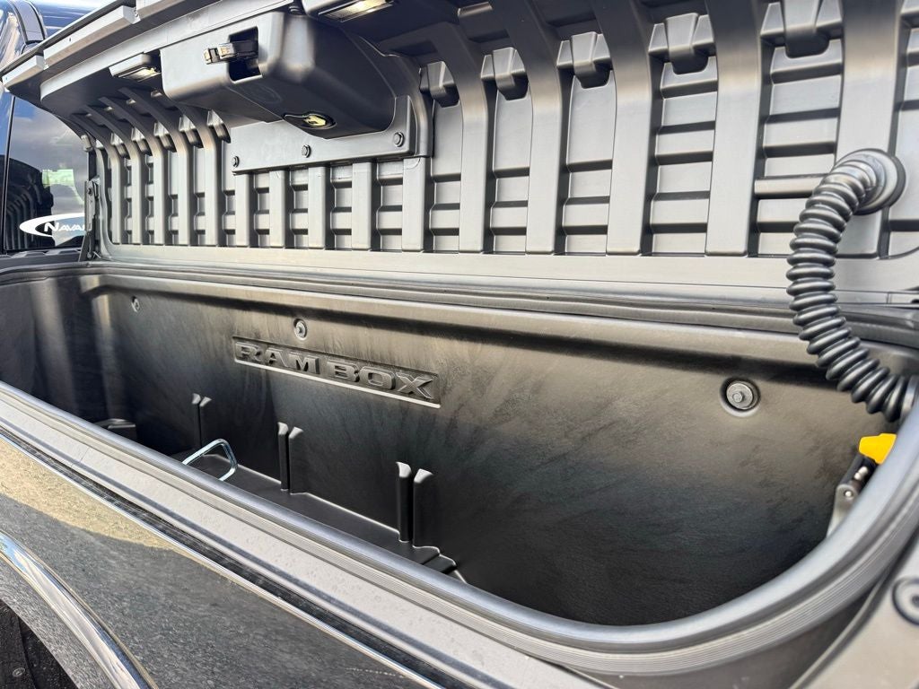 Limited Level An Equipment Group (12-Way/1-Way Trailer Connector, 14.4 Touchscreen Display, 240 Amp Alternator, 4G LTE Wi-Fi Hot Spot, Apple CarPlay, Connected Travel and Traffic Services, Connectivity - US/Canada, Disassociated Touchscreen Display, Drowsy Driver Detection, Evasive Steer Assist, Exterior 115V AC Outlet, Global Telematics Box Module, Google Android Auto, GPS Antenna Input, GPS Navigation, Hands-Free Active Driving Assist System, HD Radio, Heads-Up Display, Integrated Center Stack Radio, Integrated Voice Command with Bluetooth®, Intersection Collision Assist System, LED CHMSL Lamp, Radio: Uconnect 5 Nav with 14.4 Display, RamBox Cargo Management System, SiriusXM Radio Service, SiriusXM with 360L, Smartphone as a Key Capable, Surround View Camera System, Traffic Sign Recognition, Tri-Fold Tonneau Cover, and USB Host Flip), Night Edition (Accent Color Door Handles, Accent Color Premium Power Mirrors, Accent Color Tailgate Handle, Auto Power-Folding Mirrors, Auto-Dimming Exterior Driver Mirror, Black Day Light Opening Moldings, Black Exterior Truck Badging, Black Grille Surround Texture 7 Black, Black Headlamp Bezels, Black Painted Exterior Mirrors Caps, Black Tail Lamp Bezels, Body Color Front Bumper, Body Color Rear Bumper with Step Pads, Convex Wide-Angle Exterior Mirror Insert, Dual Exhaust with Black Tips, Exterior Mirrors Courtesy Lamps, Exterior Mirrors with Heating Element, Exterior Mirrors with Memory, Exterior Mirrors with Supplemental Signals, Pirelli Brand Tires, RAM Grille Badge - Black, Sport Performance Hood, and Wheels: 22 x 9 Premium Black Aluminum), Quick Order Package 22M Limited, 19 Speakers, 3.92 Rear Axle Ratio, 4-Wheel Disc Brakes, ABS brakes, Active Noise Control System, Adjustable pedals, Air Conditioning, Alloy wheels, AM/FM radio, Apple CarPlay/Android Auto, Audio memory, Auto High-beam Headlights, Auto-dimming door mirrors, Auto-dimming Rear-View mirror, Auto-leveling suspension, Automatic temperature control, Bodyside moldings, Brake assist, Bumpers: chrome, Chrome Exterior Mirrors, Compass, Delay-off headlights, Dome Dual LED Reading Lamp, Driver door bin, Driver vanity mirror, Dual front impact airbags, Dual front side impact airbags, Dual-Pane Panoramic Sunroof, Electronic Stability Control, Exterior Parking Camera Rear, Front anti-roll bar, Front Bucket Seats, Front Center Armrest w/Storage, Front dual zone A/C, Front fog lights, Front License Plate Bracket, Front reading lights, Front wheel independent suspension, Fully automatic headlights, Garage door transmitter, Genuine wood console insert, Genuine wood dashboard insert, Genuine wood door panel insert, Heated door mirrors, Heated front seats, Heated rear seats, Heated steering wheel, Illuminated entry, Leather steering wheel, LED Dome/Reading Lamp, Low tire pressure warning, Memory seat, MyFlexCare Service Plan, Navigation System, Occupant sensing airbag, Outside temperature display, Overhead airbag, Overhead console, Panic alarm, Passenger door bin, Passenger vanity mirror, Pedal memory, Power door mirrors, Power driver seat, Power passenger seat, Power steering, Power windows, Premium Quilted Leather Bucket Seats, Radio data system, Radio: Uconnect 5 Navigation with 12.0 Display, Rain sensing wipers, Rear anti-roll bar, Rear reading lights, Rear seat center armrest, Rear step bumper, Rear window defroster, Remote keyless entry, Security system, Speed control, Split folding rear seat, Steering wheel mounted audio controls, Tachometer, Telescoping steering wheel, Tilt steering wheel, Traction control, Trip computer, Turn signal indicator mirrors, Variably intermittent wipers, Ventilated front seats, Ventilated rear seats, Voltmeter, and Wheels: 20 x 9 Premium Paint/Polished.