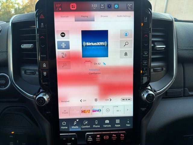 Laramie Level 2 Plus Equipment Group (#1 Seat Foam Cushion, 115V Auxiliary Rear Power Outlet, 14.4 Touchscreen Display, 17 Speaker Harman/Kardon Premium Sound, 2 Way Rear Headrest Seat, 2nd Row in Floor Storage Bins, 4 Way Front Headrests, 4G LTE Wi-Fi Hot Spot, Active Lane Management System, Adaptive Steering System, Alexa Built-in, Anti-Spin Differential Rear Axle, Apple CarPlay, Auto Adjust in Reverse Exterior Mirrors, Auto Dim Exterior Mirror, Auto High Beam Headlamp Control, Auto Power-Folding Mirrors, Auto-Dimming Exterior Passenger Mirror, Bucket Seats, Center Stop Lamp with Cargo View Camera, Chrome Exterior Mirrors, Connected Travel and Traffic Services, Connectivity - US/Canada, Disassociated Touchscreen Display, Drowsy Driver Detection, Dual Wireless Charging Pad, Emergency Vehicle Alert System (EVAS), Exterior Mirrors Courtesy Lamps, Exterior Mirrors with Heating Element, Exterior Mirrors with Memory, Exterior Mirrors with Supplemental Signals, Foam Bottle Insert (door Trim Panel), Folding Flat Load Floor Storage, For Details, Visit DriveUconnect.com, For More Info, Call 800-643-2112, Forward and Reverse Utility Lights, Front Seat Back Map Pockets, Full Length Upgraded Floor Console, Global Telematics Box Module, Google Android Auto, GPS Antenna Input, GPS Navigation, HD Radio, Heated Front Seats, Heated Steering Wheel, High Back Seats, Integrated Voice Command with Bluetooth®, Leather Trimmed Bucket Seats, LED Bed Lighting, Mirror Running Lights, MOPAR Deployable Bed Step, MOPAR Spray in Bedliner, Off-Road Info Pages, Power 2-Way Driver Lumbar Adjust, Power 2-Way Passenger Lumbar Adjust, Power Adjust 8-Way Driver Seat, Power Adjust 8-Way Front Passenger Seat, Power Adjust Mirrors, Power Adjustable Pedals with Memory, Power Deployable Running Boards, Power Heated Fold Telescopic Mirrors with Memory, Power Telescoping Mirrors, Power-Adjustable Convex Aux Mirrors, Radio: Uconnect 5 Nav with 14.4 Display, Radio/Driver Seat/Mirrors/Pedals Memory, Rain Sensitive Windshield Wipers, Rear 60/40 Folding Seat, Remote Tailgate Release, Selectable Tire Fill Alert, SiriusXM Radio Service, SiriusXM with 360L, Traffic Sign Recognition, Trailer Tow Pages, and Ventilated Front Seats), Night Edition (Black Exterior Mirrors, Black Exterior Truck Badging, Black Wheel Center Hub, Body Color Grille-Surround, Gloss Black Grille Billets/Accents, Sport Performance Hood, and Wheels: 20 x 8.0 Black Painted Aluminum), on Board Power System - 2.4KW, Quick Order Package 24H Laramie, Towing Technology Group (Surround View Camera System, Trailer Reverse Guidance, and Trailer Tire Pressure Monitoring System), 10 Speakers, 4-Wheel Disc Brakes, 5th Wheel/Gooseneck Towing Prep Group, ABS brakes, Air Conditioning, Alloy wheels, AM/FM radio: SiriusXM with 360L, Apple CarPlay/Android Auto, Auto Level Rear Air Suspension, Auto-dimming Rear-View mirror, Automatic temperature control, Brake assist, Bumpers: body-color, Clearance Lamps, Compass, Delay-off headlights, Driver door bin, Driver vanity mirror, Dual Alternators Rated At 480 Amps, Dual front impact airbags, Dual front side impact airbags, Electronic Stability Control, Front anti-roll bar, Front Center Armrest w/Storage, Front dual zone A/C, Front fog lights, Front reading lights, Fully automatic headlights, Garage door transmitter, Heated door mirrors, Heated front seats, Heated steering wheel, Illuminated entry, Leather Trim 40/20/40 Bench Seat, Low tire pressure warning, MyFlexCare Service Diesel, Navigation System, Occupant sensing airbag, Outside temperature display, Overhead airbag, Overhead console, Painted Flat Wheel-to-Wheel Side Steps, Panic alarm, ParkView Rear Back-Up Camera, Passenger door bin, Passenger vanity mirror, Power door mirrors, Power driver seat, Power passenger seat, Power steering, Power Sunroof, Power windows, Radio data system, Radio: Uconnect 5 Navigation with 12.0 Display, Rear an