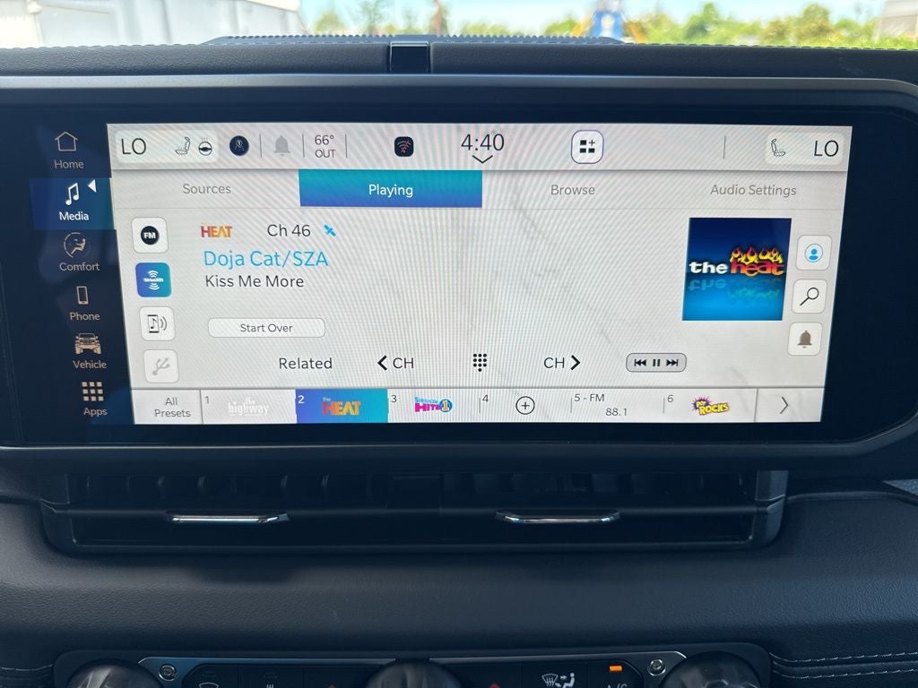 Convenience Group (Corning Gorilla Glass, Daytime Running Lamp System, Emergency/Assistance Call, Front Door Locks 2-Door Passive Entry, Heated Front Seats, Heated Steering Wheel, Remote Start System, and Universal Garage Door Opener), Max Tow Package w/4.10 Axle Ratio (110 MPH Vehicle Max Speed Calibration, Anti-Spin Differential Rear Axle, Black Molded-In-Color Fender Flares (2-Piece), Class IV Receiver Hitch, Conventional Differential Front Axle, Dana M210 Wide Front Axle, Dana M220 Wide Rear Axle, and Heavy-Duty Engine Cooling), Premium Package (Body Color 3-Piece Hard Top, Freedom Panel Storage Bag, No Soft Top, Premium McKinley Trimmed Seats, Rear Sliding Window, Rear Window Defroster, and Wheels: 18 x 7.5 Machined/Painted Gray), Quick Order Package 24S Sport S (Advanced Brake Assist, Automatic Headlamps, Deep Tint Sunscreen Windows, Enhanced Adaptive Cruise Control, Full Speed Forward Collision Warning Plus, Normal Duty Plus Suspension, Power Heated Mirrors, Premium Wrapped Steering Wheel, Security Alarm, Sun Visors w/Illuminated Vanity Mirrors, and Wheels: 17 x 7.5 Gray), 12.3 Touchscreen Display, 4-Wheel Disc Brakes, 4G LTE Wi-Fi Hot Spot, 8 Speakers, ABS brakes, Air Conditioning, Alexa Built-In, AM/FM radio: SiriusXM, Apple CarPlay, Apple CarPlay/Android Auto, Brake assist, Cloth Low-Back Bucket Seats, Compass, Connectivity - US/Canada, Delay-off headlights, Driver door bin, Driver vanity mirror, Dual front impact airbags, Dual front side impact airbags, Electronic Stability Control, Front anti-roll bar, Front Bucket Seats, Front Center Armrest w/Storage, Front fog lights, Front reading lights, Google Android Auto, Illuminated entry, Integrated roll-over protection, Low tire pressure warning, MOPAR Spray In Bedliner, Normal Duty Suspension, Occupant sensing airbag, Outside temperature display, Overhead airbag, Panic alarm, ParkView Rear Back-Up Camera, Passenger door bin, Passenger vanity mirror, Power steering, Power windows, Radio data system, Radio: Uconnect 5 w/12.3 Display, Rear anti-roll bar, Rear reading lights, Remote keyless entry, Speed control, Split folding rear seat, Steering wheel mounted audio controls, Tachometer, Telescoping steering wheel, Tilt steering wheel, Traction control, Trip computer, USB Host Flip, Variably intermittent wipers, Voltmeter, and Wheels: 17 x 7.5 Black Steel Styled.