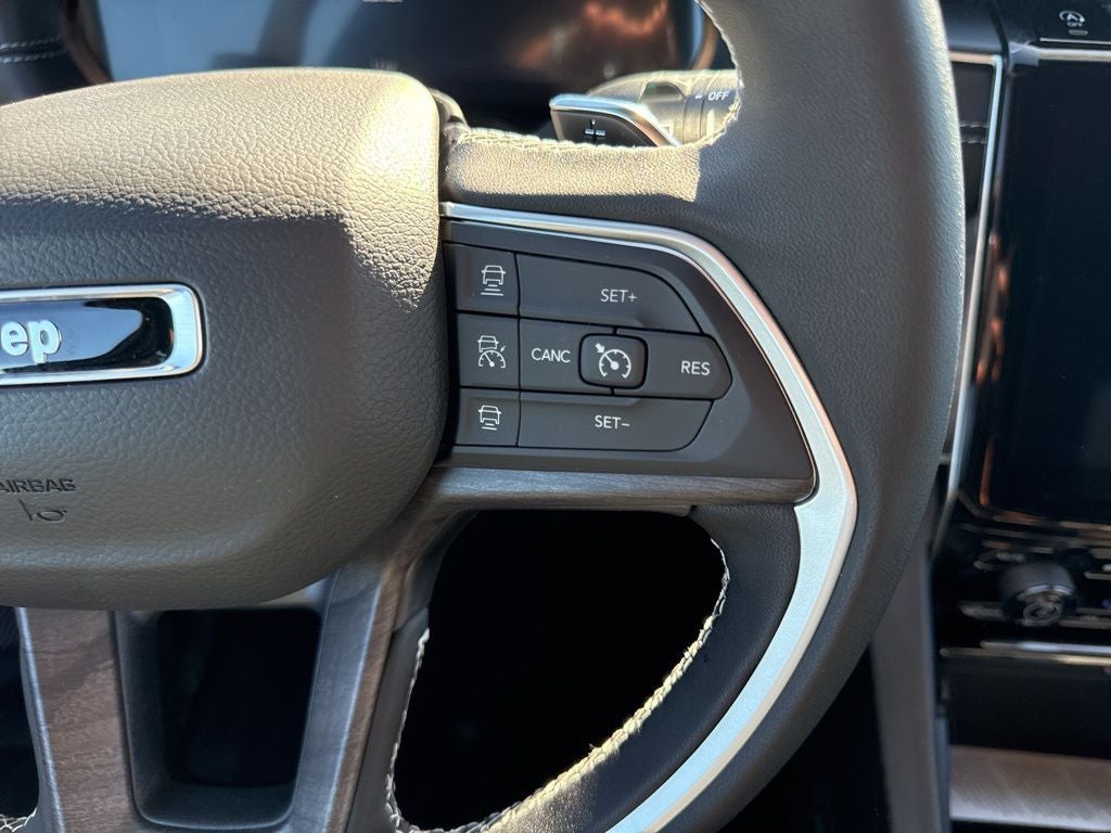 Quick Order Package 23E (DISC), Trailer Tow Package (220 Amp Alternator, 7 & 4 Pin Wiring Harness, Automatic Headlamp Leveling System, Class IV Receiver Hitch, Dual Exhaust Tips, Heavy-Duty Engine Cooling, Rear Load Leveling Suspension, and Trailer Hitch Zoom), 3.45 Rear Axle Ratio, 3rd row seats: split-bench, 4-Wheel Disc Brakes, 6 Speakers, ABS brakes, Active Noise Control System, Air Conditioning, Alloy wheels, AM/FM radio: SiriusXM with 360L, Anti-whiplash front head restraints, Audio memory, Auto High-beam Headlights, Automatic temperature control, Brake assist, Bumpers: body-color, Capri Leatherette Seats, Compass, Delay-off headlights, Driver door bin, Driver vanity mirror, Dual front impact airbags, Dual front side impact airbags, Dual-Pane Panoramic Sunroof, Electronic Stability Control, Emergency communication system, Four wheel independent suspension, Front anti-roll bar, Front Bucket Seats, Front Center Armrest w/Storage, Front dual zone A/C, Front fog lights, Front License Plate Bracket, Front reading lights, Fully automatic headlights, Garage door transmitter, Heated door mirrors, Heated front seats, Heated rear seats, Heated steering wheel, Illuminated entry, Interior Rear Facing Camera, Knee airbag, Low tire pressure warning, Manual Fold Seatbacks, Memory seat, Model Year Tracking, Navigation System, Normal Duty Suspension, Occupant sensing airbag, Outside temperature display, Overhead airbag, Overhead console, Panic alarm, ParkView Rear Back-Up Camera, Passenger door bin, Passenger vanity mirror, Power door mirrors, Power driver seat, Power Liftgate, Power passenger seat, Power steering, Power windows, Radio data system, Radio: Uconnect 5 Nav w/10.1 Display, Rear air conditioning, Rear anti-roll bar, Rear reading lights, Rear window defroster, Rear window wiper, Reclining 3rd row seat, Remote keyless entry, Security system, Speed control, Speed-Sensitive Wipers, Split folding rear seat, Spoiler, Steering wheel mounted audio controls, Tachometer, Telescoping steering wheel, Tilt steering wheel, Traction control, Trip computer, Turn signal indicator mirrors, Variably intermittent wipers, Voltmeter, and Wheels: 18 x 8.0 Polished/Painted Aluminum.