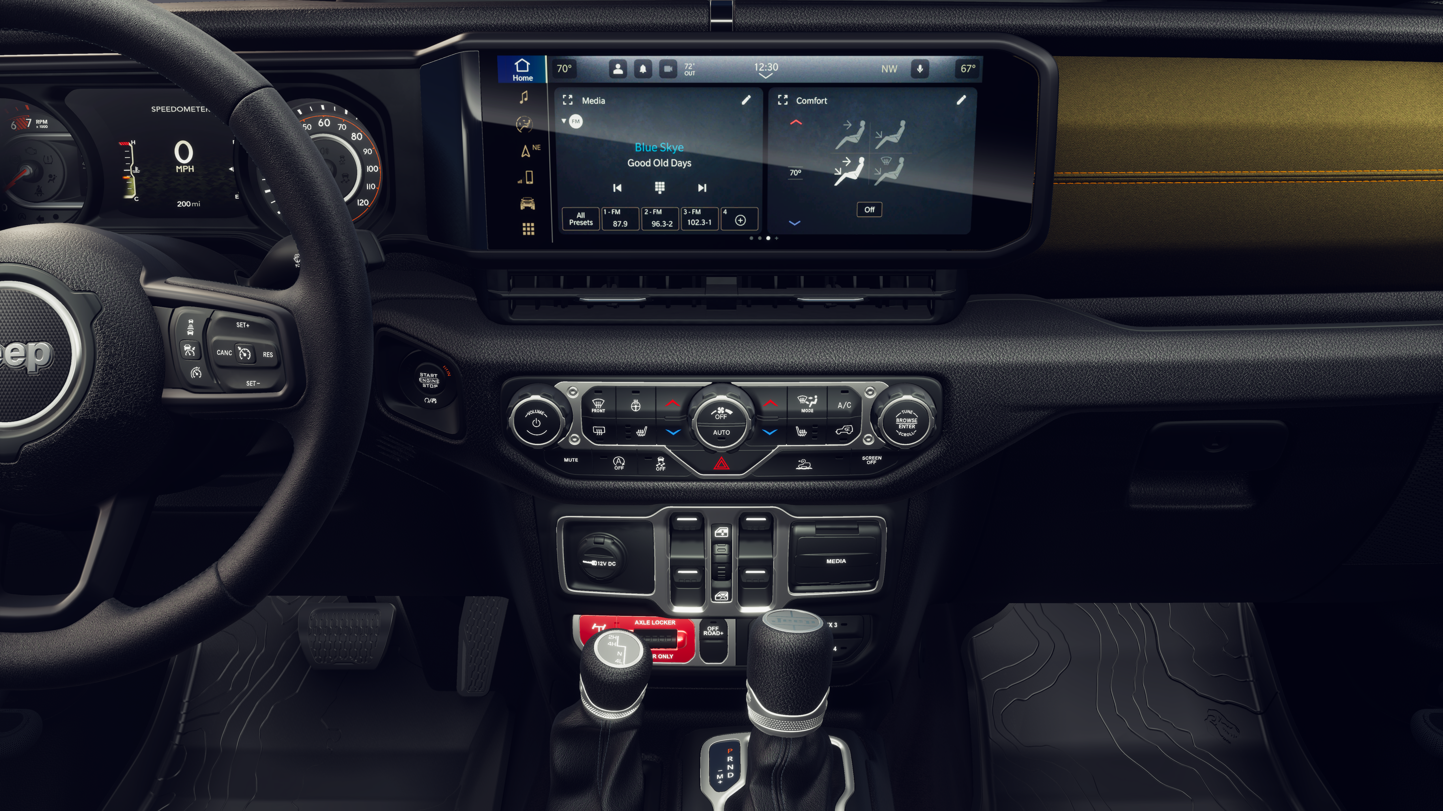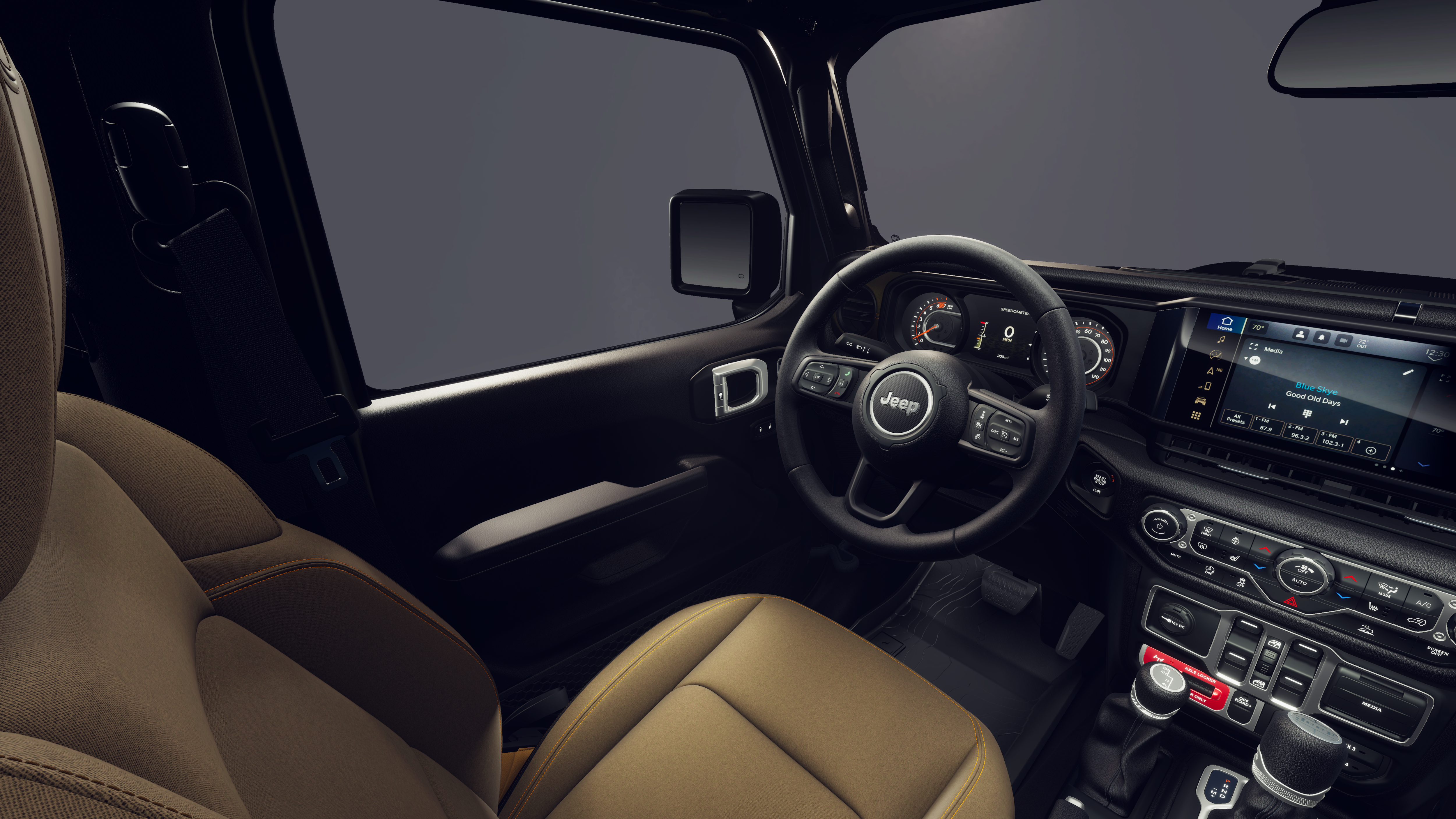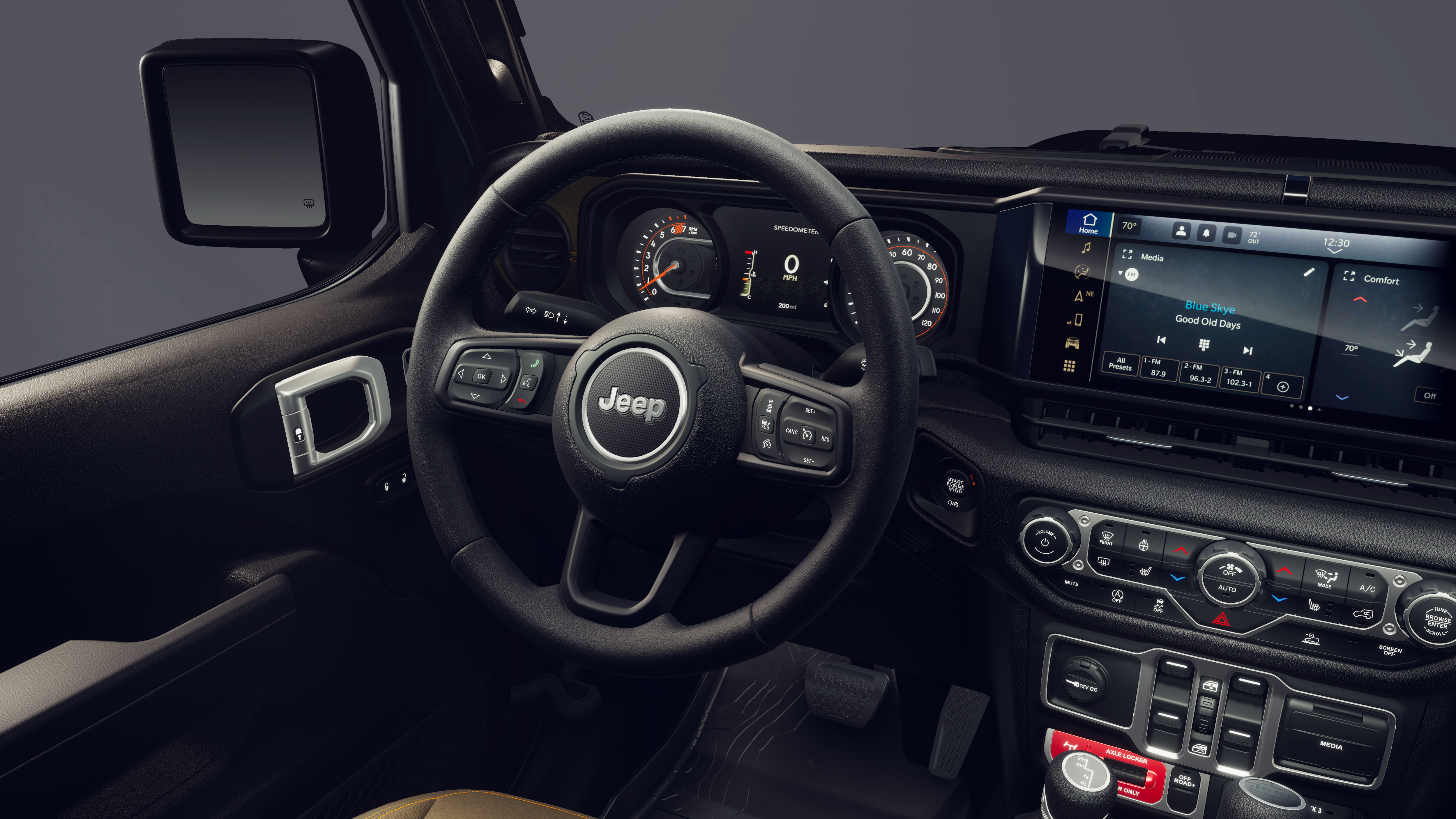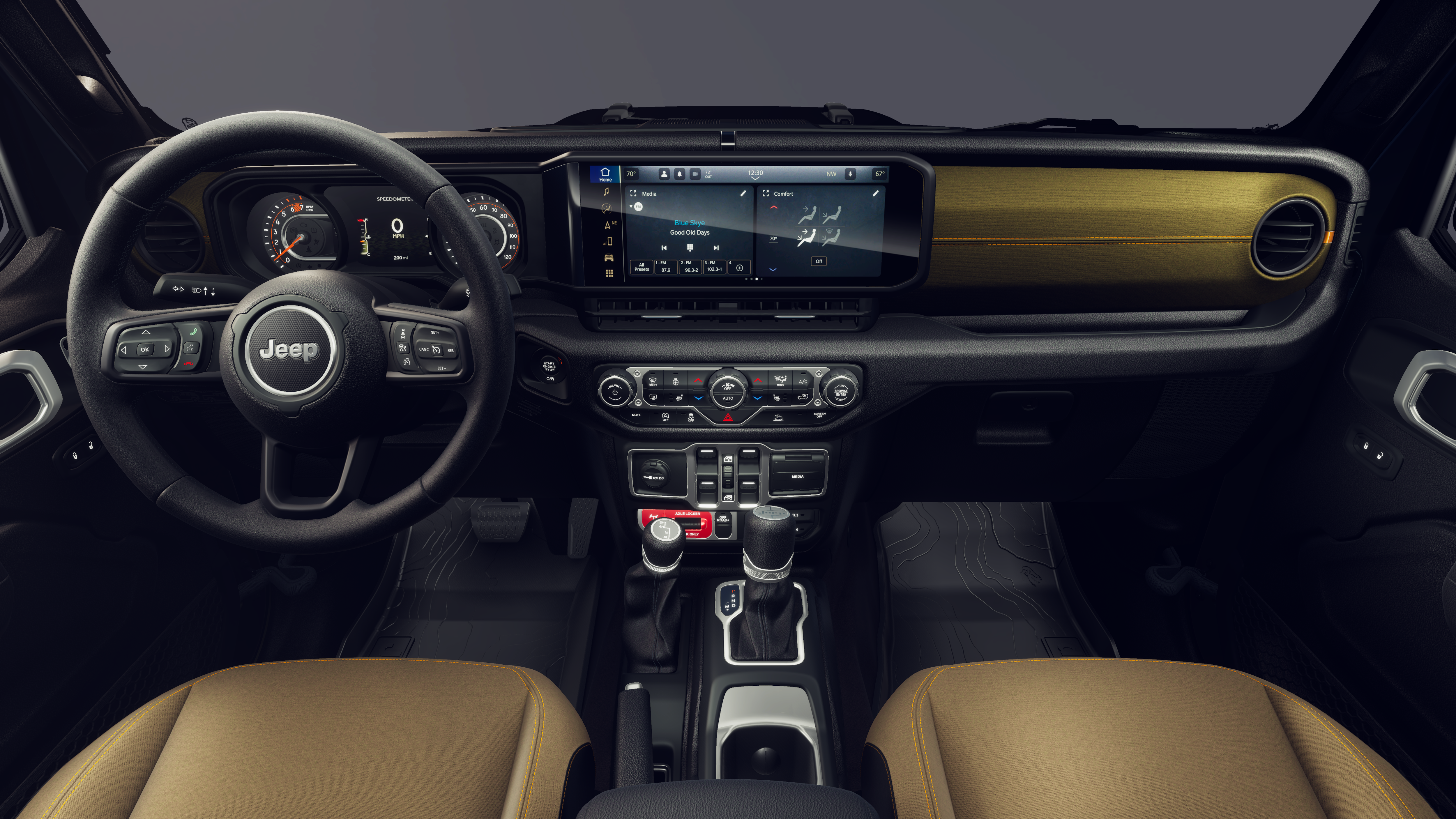 Convenience Group (Air Conditioning with Auto Temp Control, Cluster 7.0 TFT Color Display, Corning Gorilla Glass, Daytime Running Lamp System, Emergency/Assistance Call, Front Door Locks 2-Door Passive Entry, Heated Front Seats, Heated Steering Wheel, Remote Start System, and Universal Garage Door Opener), 110 Mph Vehicle Max Speed Calibration, 12.3 Touchscreen Display, 3.73 Rear Axle Ratio, 4-Wheel Disc Brakes, 4G LTE Wi-Fi Hot Spot, 8 Speakers, ABS brakes, Air Conditioning, Alexa Built-in, AM/FM radio: SiriusXM with 360L, Apple CarPlay, Apple CarPlay/Android Auto, Black 3-Piece Hard Top, Brake assist, Compass, Connectivity - US/Canada, Delay-off headlights, Driver door bin, Driver vanity mirror, Dual front impact airbags, Dual front side impact airbags, Electronic Stability Control, For Details, Visit DriveUconnect.com, Freedom Panel Storage Bag, Front anti-roll bar, Front Bucket Seats, Front Center Armrest w/Storage, Front fog lights, Front reading lights, Google Android Auto, Illuminated entry, Integrated Center Stack Radio, Integrated roll-over protection, Low tire pressure warning, MOPAR Spray in Bedliner, MyFlexCare Service Plan, Normal Duty Suspension, Occupant sensing airbag, Outside temperature display, Overhead airbag, Panic alarm, ParkView Rear Back-Up Camera, Passenger door bin, Passenger vanity mirror, Power steering, Power windows, Radio data system, Radio: Uconnect 5 with 12.3 Display, Rear anti-roll bar, Rear reading lights, Rear Sliding Window, Rear Window Defroster, Remote keyless entry, SiriusXM Radio Service, SiriusXM with 360L, Speed control, Split folding rear seat, Steering wheel mounted audio controls, Tachometer, Telescoping steering wheel, Tilt steering wheel, Traction control, Trip computer, USB Host Flip, Variably intermittent wipers, Voltmeter, and Wheels: 17 x 7.5 Black Steel StyleD.