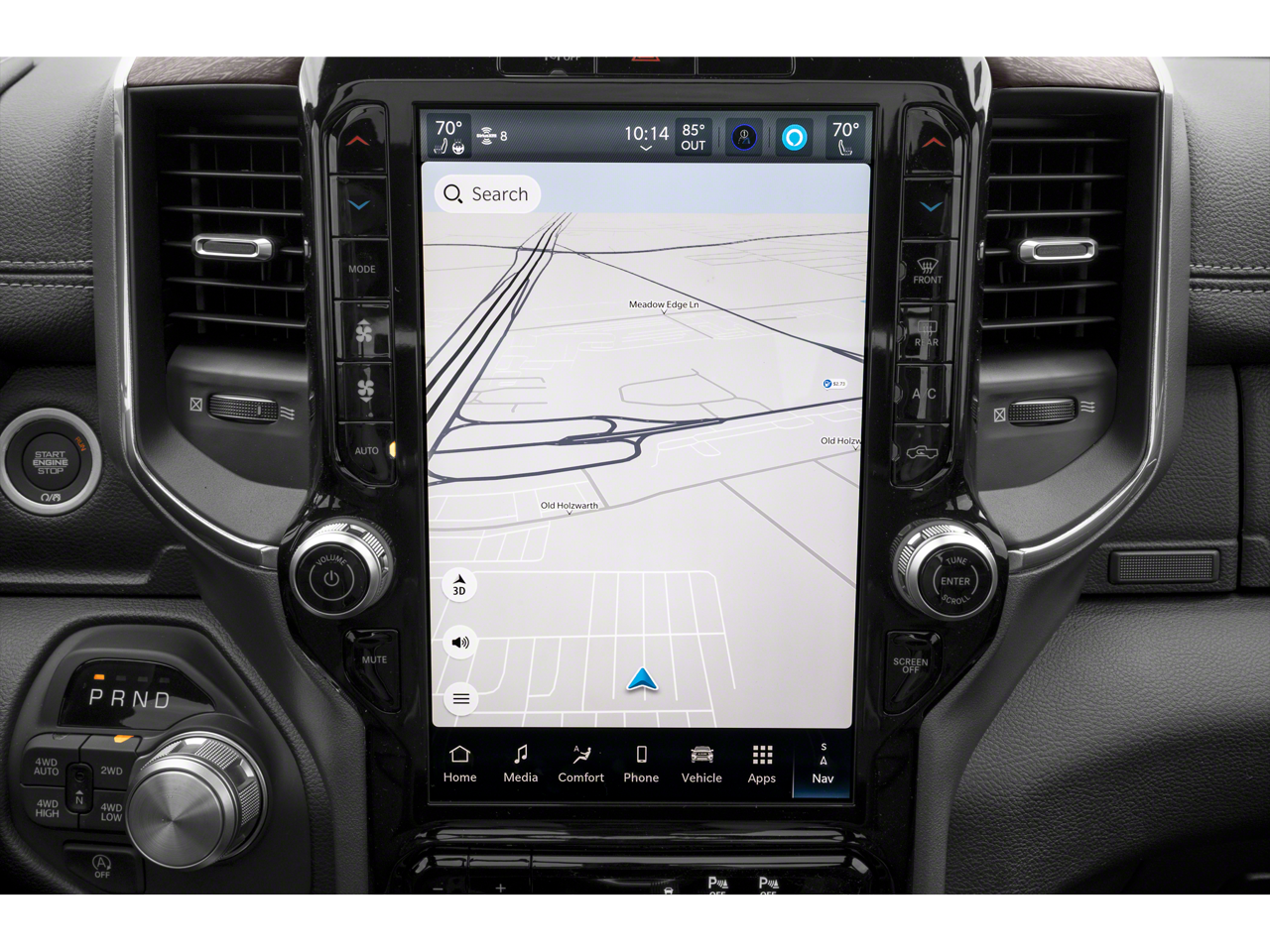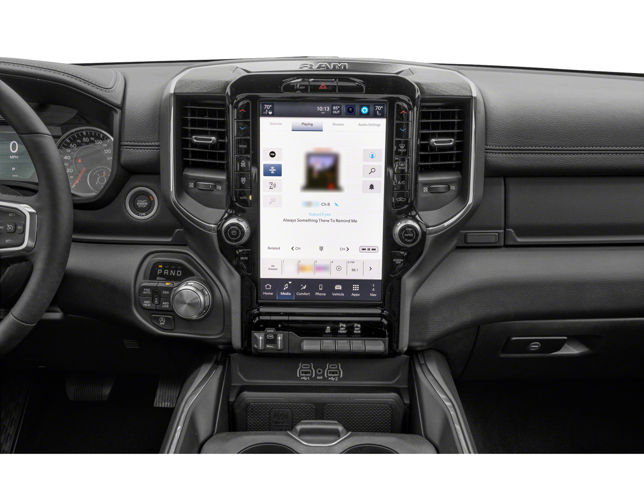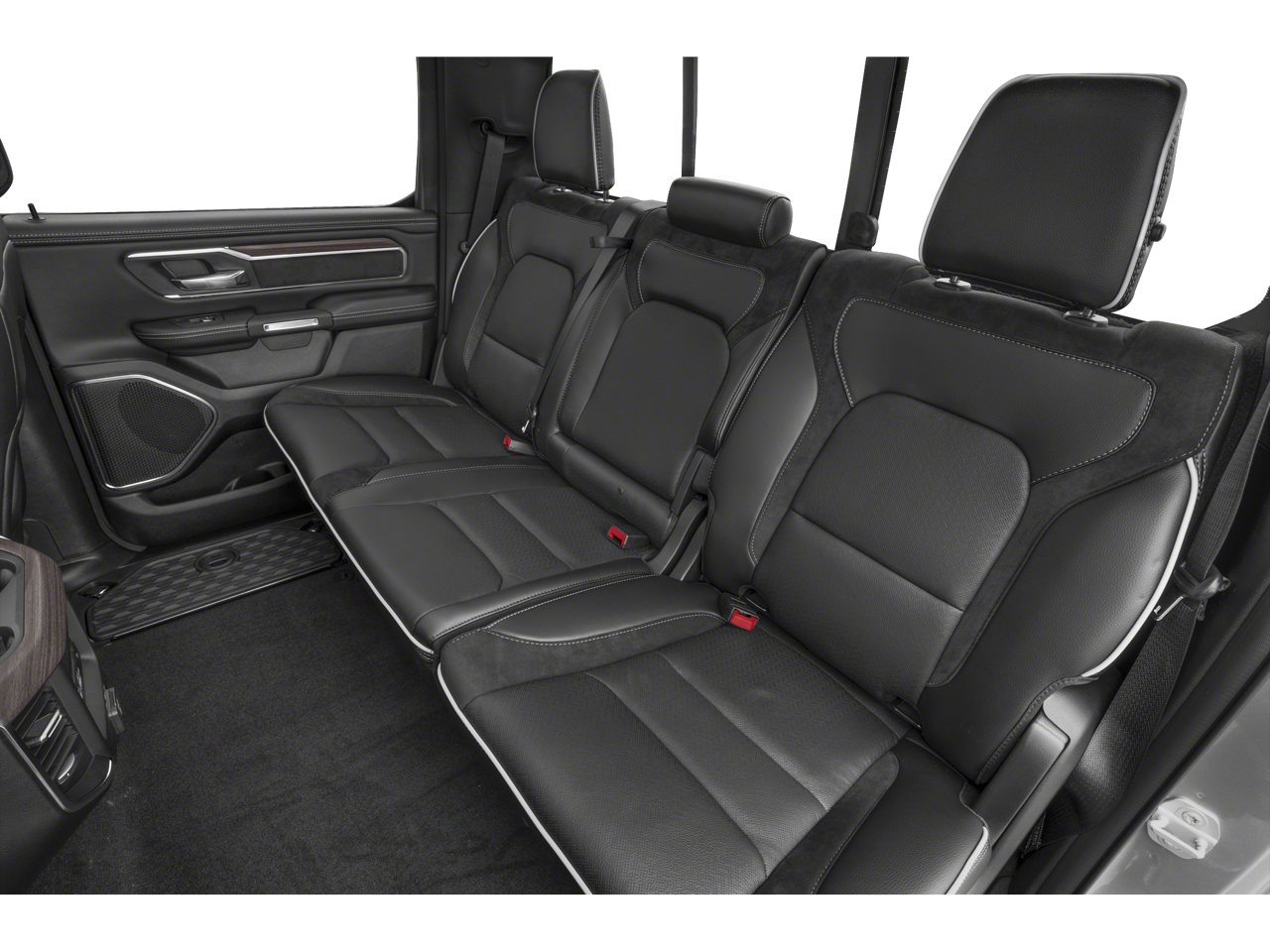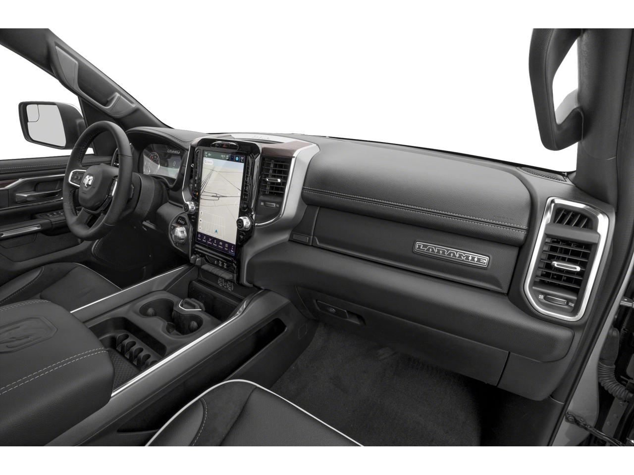 Advanced Safety Group II (12-Way/1-Way Trailer Connector, Active Driving Assist System, Drowsy Driver Detection, Evasive Steer Assist, Exterior Mirrors Approach Lamps, Intersection Collision Assist System, Surround View Camera System, and Traffic Sign Recognition), Bed Utility Group (Exterior 115V AC Outlet, MOPAR 4 Adjustable Cargo Tie-Down Hooks, and MOPAR Spray in Bedliner), Laramie Level 2 Equipment Group (14.4 Touchscreen Display, 4G LTE Wi-Fi Hot Spot, Cluster 12 TFT Color Display, Connected Travel and Traffic Services, Connectivity - US/Canada, Front Passenger Interactive Display, GPS Navigation, Harman/Kardon 19 Speaker Premium Sound, Integrated Center Stack Radio, Integrated Voice Command with Bluetooth®, Power Tailgate, Radio: Uconnect 5 Nav with 14.4 Display, Rain Sensitive Windshield Wipers, SiriusXM Radio Service, SiriusXM with 360L, and USB Host Flip), Night Edition (Accent Color Door Handles, Accent Color Premium Power Mirrors, Accent Color Tailgate Handle, Anti-Spin Differential Rear Axle, Auto Power-Folding Mirrors, Auto-Dimming Exterior Driver Mirror, Black Exterior Truck Badging, Black Headlamp Bezels, Black Interior Accents, Black Painted Exterior Mirrors Caps, Black Tail Lamp Bezels, Body Color Front Bumper, Body Color Rear Bumper with Step Pads, Convex Wide-Angle Exterior Mirror Insert, Dual Exhaust with Black Tips, Exterior Mirrors Courtesy Lamps, Exterior Mirrors with Heating Element, Exterior Mirrors with Memory, Exterior Mirrors with Supplemental Signals, Grille Surround 3 Black Texture 2 Black, Pirelli Brand Tires, Proximity Approach/Departure Lamps, RAM Grille Badge - Black, Sport Performance Hood, and Wheels: 22 x 9 Forged Aluminum), Protection Group (Tow Hooks), Quick Order Package 27H Laramie, Technology Group (Heads-Up Display and LED CHMSL Lamp), Trailer Tow Group II (Trailer Brake Control, Trailer Light Check, Trailer Reverse Steering Control, and Trailer Tire Pressure Monitoring System), 10 Speakers, 33 Gallon Fuel Tank, 4-Wheel Disc Brakes, ABS brakes, Active Noise Control System, Adjustable pedals, Air Conditioning, Alloy wheels, AM/FM radio: SiriusXM with 360L, Apple CarPlay/Android Auto, Audio memory, Auto High-beam Headlights, Auto-dimming door mirrors, Auto-Dimming Exterior Passenger Mirror, Auto-dimming Rear-View mirror, Automatic temperature control, Black Exterior Mirrors, Black Power-Fold Trailer Tow Mirrors, Brake assist, Bumpers: chrome, Chrome Exterior Mirrors, Compass, Delay-off headlights, Dome Dual LED Reading Lamp, Driver door bin, Driver vanity mirror, Dual front impact airbags, Dual front side impact airbags, Dual-Pane Panoramic Sunroof, Electronic Stability Control, Forward and Reverse Utility Lights, Front anti-roll bar, Front Bucket Seats, Front Center Armrest w/Storage, Front dual zone A/C, Front fog lights, Front reading lights, Front wheel independent suspension, Fully automatic headlights, Garage door transmitter, Heated door mirrors, Heated front seats, Heated rear seats, Heated steering wheel, Illuminated entry, Leather steering wheel, Leather Trimmed Bucket Seats, LED Dome/Reading Lamp, Low tire pressure warning, Memory seat, Mirror Clearance/Running Lights, Mopar Black Tubular Side Steps, MOPAR Front and Rear Rubber Floor Mats, MyFlexCare Service Plan, Navigation System, Occupant sensing airbag, Off-Road Information Pages, Outside temperature display, Overhead airbag, Overhead console, Panic alarm, ParkView Rear Back-Up Camera, Passenger door bin, Passenger vanity mirror, Pedal memory, Power door mirrors, Power driver seat, Power passenger seat, Power steering, Power Telescoping Mirrors, Power windows, Power-Adjustable Convex Aux Mirrors, Radio data system, Radio: Uconnect 5 Navigation with 12.0 Display, RAM Grille Badge - Chrome, RamBox Cargo Management System, Rear anti-roll bar, Rear reading lights, Rear seat cen