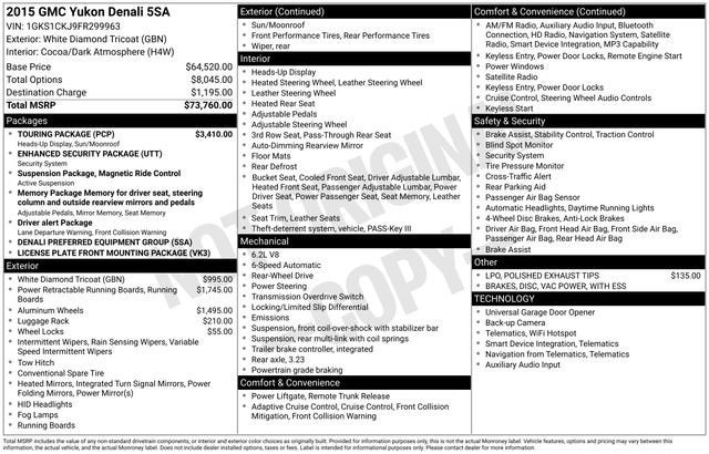 White Diamond Clearcoat 2015 GMC Yukon Denali RWD 6-Speed Automatic Electronic with Overdrive EcoTec3 6.2L V8