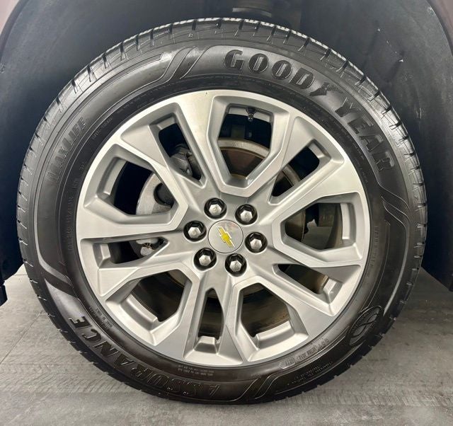 Front License Plate Bracket Mounting Package, Preferred Equipment Group 1LZ, Trailering Equipment (Heavy-Duty Cooling System, Hitch Guidance w/Hitch View, and Trailering Assist Guidelines), 10 Speakers, 3.49 Axle Ratio, 3rd row seats: split-bench, 4-Wheel Disc Brakes, 7-Passenger Seating (2-2-3 Seating Configuration), ABS brakes, Air Conditioning, Alloy wheels, AM/FM radio: SiriusXM, Apple CarPlay/Android Auto, Auto High-beam Headlights, Auto-dimming door mirrors, Auto-dimming Rear-View mirror, Automatic temperature control, Bose Premium 10-Speaker Audio System Feature, Brake assist, Bumpers: body-color, Compass, Delay-off headlights, Driver door bin, Driver vanity mirror, Dual front impact airbags, Dual front side impact airbags, Dual SkyScape 2-Panel Power Sunroof, Electronic Stability Control, Emergency communication system: OnStar and Chevrolet connected services capable, Four wheel independent suspension, Front anti-roll bar, Front Bucket Seats, Front Center Armrest, Front dual zone A/C, Front fog lights, Front reading lights, Fully automatic headlights, Garage door transmitter, Heated door mirrors, Heated front seats, Heated rear seats, Heated steering wheel, Illuminated entry, Leather steering wheel, Low tire pressure warning, Memory seat, Navigation System, Occupant sensing airbag, Outside temperature display, Overhead airbag, Overhead console, Panic alarm, Passenger door bin, Passenger vanity mirror, Perforated Leather-Appointed Seat Trim, Power door mirrors, Power driver seat, Power Liftgate, Power passenger seat, Power steering, Power windows, Premium audio system: Chevrolet MyLink, Radio data system, Radio: Chevrolet Infotainment 3 Premium System, Rear air conditioning, Rear anti-roll bar, Rear reading lights, Rear window defroster, Rear window wiper, Remote keyless entry, Roof rack: rails only, Security system, SiriusXM w/360L, Speed control, Speed-sensing steering, Spoiler, Steering wheel memory, Steering wheel mounted audio controls, Tachometer, Telescoping steering wheel, Tilt steering wheel, Traction control, Trip computer, Turn signal indicator mirrors, Variably intermittent wipers, Ventilated front seats, Voltmeter, and Wheels: 20 Argent Metallic Machine Faced Aluminum.