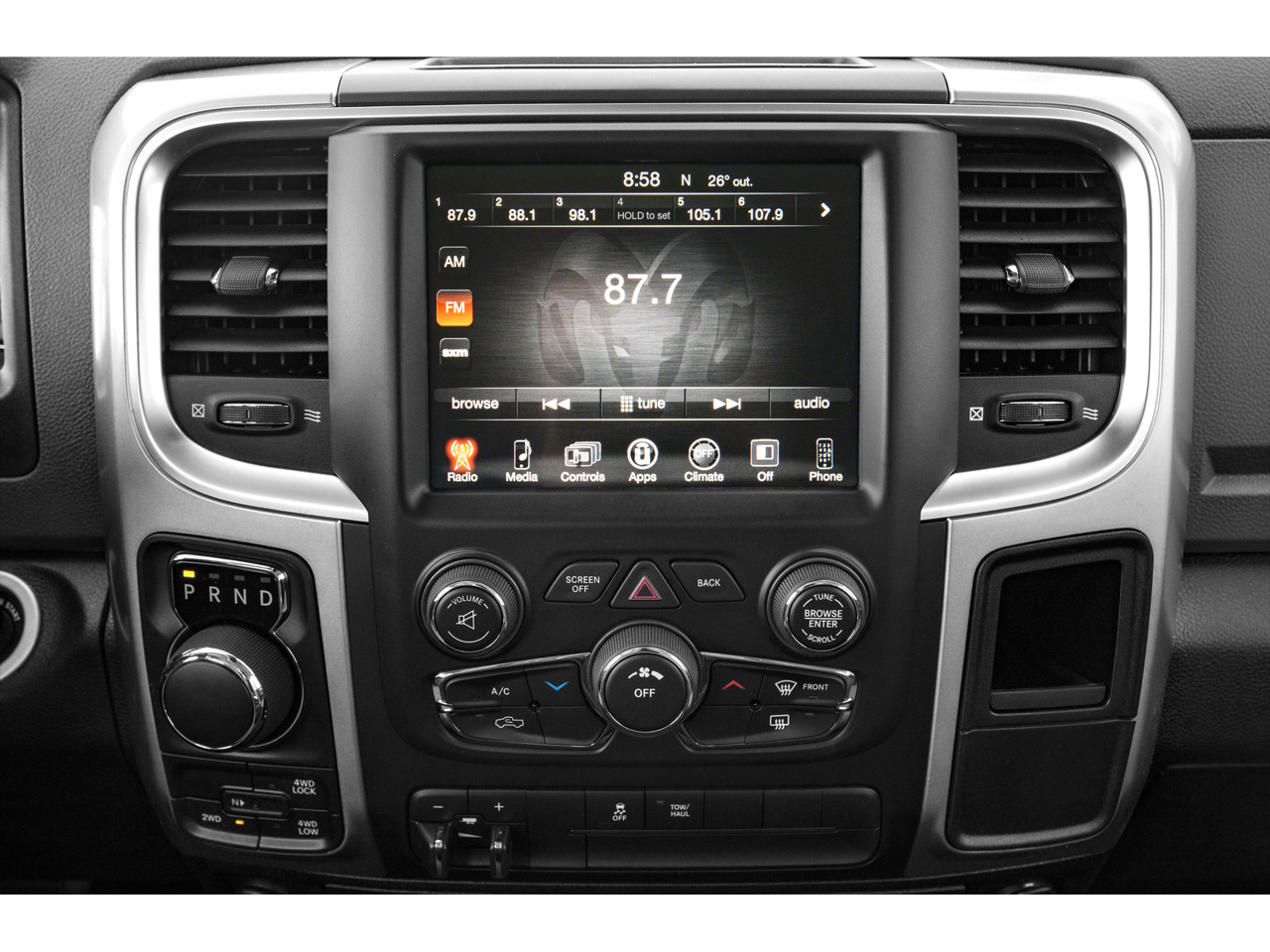17" x 7" Aluminum Wheels, 3.21 Rear Axle Ratio, 4-Wheel Disc Brakes, 40/20/40 Split Bench Seat, 6 Speakers, ABS brakes, Air Conditioning, Alloy wheels, AM/FM radio: SiriusXM, Black Exterior Mirrors, Brake assist, Bumpers: chrome, Cloth 40/20/40 Bench Seat (Fleet), Compass, Delay-off headlights, Driver door bin, Dual front impact airbags, Dual front side impact airbags, Electronic Stability Control, Exterior Mirrors w/Heating Element, Front anti-roll bar, Front Armrest w/3 Cupholders, Front Center Armrest w/Storage, Front License Plate Bracket, Front reading lights, Front wheel independent suspension, Fully automatic headlights, GPS Antenna Input, Heated door mirrors, Illuminated entry, Integrated Voice Command w/Bluetooth®, Low tire pressure warning, Manufacturer's Statement of Origin, Occupant sensing airbag, Outside temperature display, Overhead airbag, Overhead console, Panic alarm, ParkView Rear Back-Up Camera, Passenger door bin, Passenger vanity mirror, Power door mirrors, Power steering, Power windows, Radio data system, Radio: Uconnect 3 w/5" Display, Rear anti-roll bar, Rear Floor Mats, Rear seat center armrest, Rear step bumper, Remote keyless entry, Remote USB Port - Charge Only, Speed control, Storage Tray, Tachometer, Tilt steering wheel, Traction control, Trip computer, Variably intermittent wipers, and Voltmeter. Recent Arrival!
