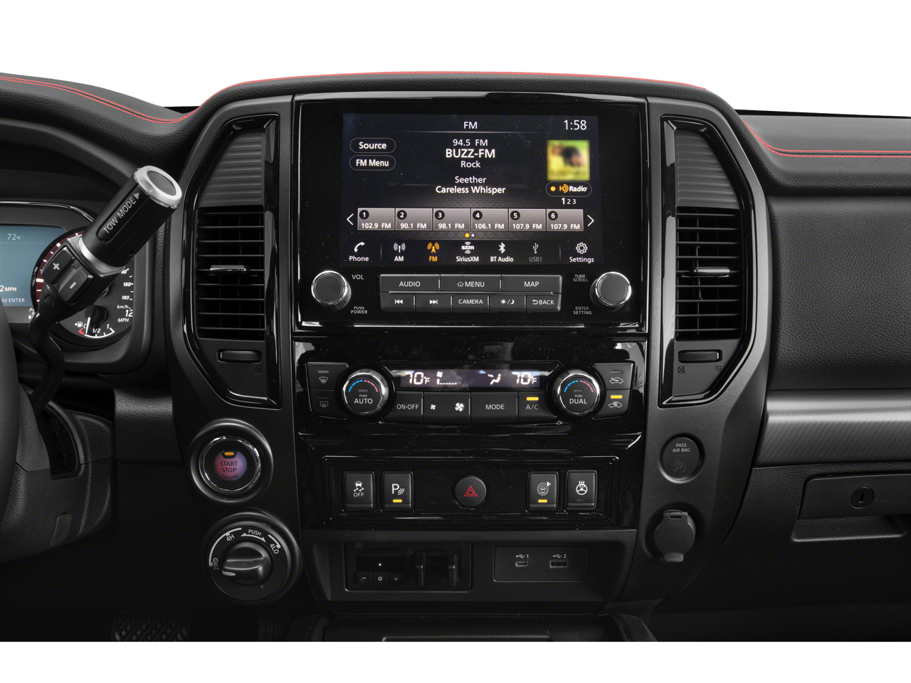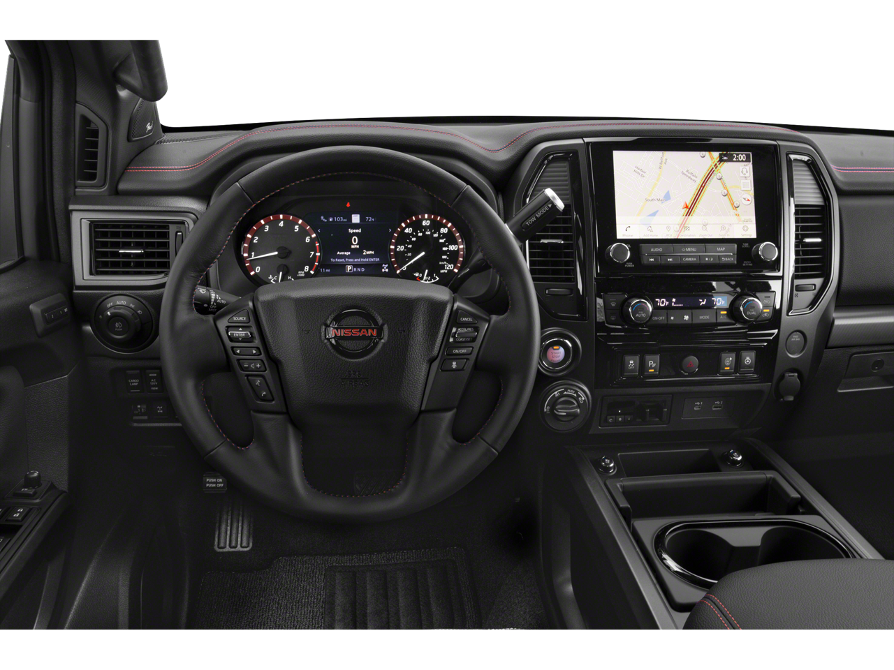 Step inside the spacious and well-appointed cabin, where premium materials and thoughtful design create an exceptional driving experience. The Titan PRO-4X offers a wealth of advanced technology, including a state-of-the-art infotainment system, a premium audio setup, and a suite of driver-assistance features to keep you safe and connected on the road.