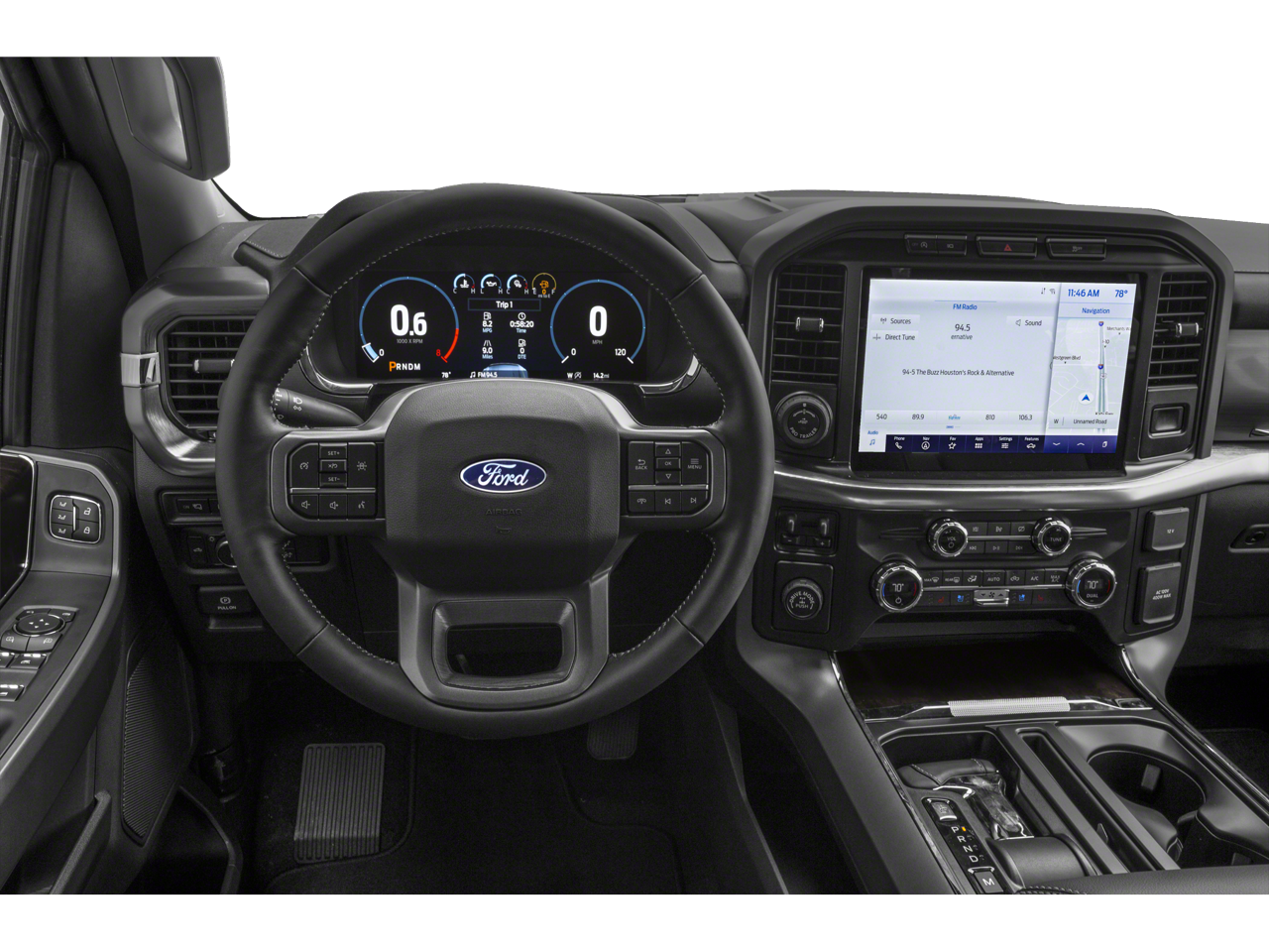 Equipment Group 501A Mid (Onboard 400W Outlet and Radio: B&O Sound System by Bang & Olufsen), Lariat Chrome Appearance Package (6" Bright Polished Running Board, Chrome 2-Bar Grille w/4 Minor Bars, Chrome Door & Tailgate Handles w/Body-Color Bezel, Chrome Single-Tip Exhaust, Chrome Skull Caps on Exterior Mirrors, and Wheels: 18" Chrome-Like PVD), Trailer Tow Package (Class IV Trailer Hitch Receiver, Integrated Trailer Brake Controller, and Pro Trailer Backup Assist), 4WD, 18" Machined-Aluminum Wheels, 4-Wheel Disc Brakes, 7 Speakers, ABS brakes, Adjustable pedals, Air Conditioning, Alloy wheels, AM/FM radio: SiriusXM with 360L, Auto High-beam Headlights, Auto Start-Stop Removal, Auto-dimming door mirrors, Auto-dimming Rear-View mirror, Automatic temperature control, Brake assist, Bumpers: chrome, Compass, Connected Navigation & SiriusXM w/360L Removal, Delay-off headlights, Driver door bin, Driver vanity mirror, Dual front impact airbags, Dual front side impact airbags, Electronic Stability Control, Emergency communication system: SYNC 4 911 Assist, Exterior Parking Camera Rear, Front anti-roll bar, Front Center Armrest w/Storage, Front dual zone A/C, Front fog lights, Front reading lights, Front wheel independent suspension, Fully automatic headlights, Heated door mirrors, Heated front seats, Illuminated entry, Interior Work Surface, Leather-Trimmed 40/20/40 Front Seat, LED Sideview Mirror Spotlights, Low tire pressure warning, Memory seat, Occupant sensing airbag, Outside temperature display, Overhead airbag, Overhead console, Panic alarm, Passenger door bin, Passenger vanity mirror, Pedal memory, Power door mirrors, Power driver seat, Power passenger seat, Power steering, Power windows, Radio data system, Radio: AM/FM SiriusXM w/360L, Rear reading lights, Rear seat center armrest, Rear step bumper, Rear window defroster, Remote keyless entry, Security system, Speed control, Speed-sensing steering, Split folding rear seat, Steering wheel mounted audio controls, SYNC 4 w/Enhanced Voice Recognition, Tachometer, Telescoping steering wheel, Tilt steering wheel, Traction control, Trip computer, Turn signal indicator mirrors, Variably intermittent wipers, Ventilated front seats, Voltmeter, and Wheels: 20" Chrome-Like PVD. Recent Arrival! Odometer is 34458 miles below market average!