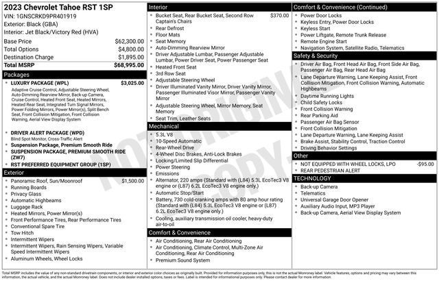 Whether you're embarking on a family road trip, hauling gear for your next adventure, or simply seeking a commanding presence on the road, this 2023 Chevrolet Tahoe RST is the perfect companion. Experience the ultimate in style, performance, and technology – visit our showroom today and let us help you discover the true power of this exceptional SUV.
