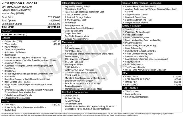 Discover the remarkable 2023 Hyundai Tucson SE, a compact SUV that blends style, performance, and cutting-edge technology. This stunning Calypso Red Tucson SE is equipped with a powerful 2.5L I4 engine, delivering an impressive 187 horsepower and exceptional fuel efficiency of 25 city/32 highway MPG.