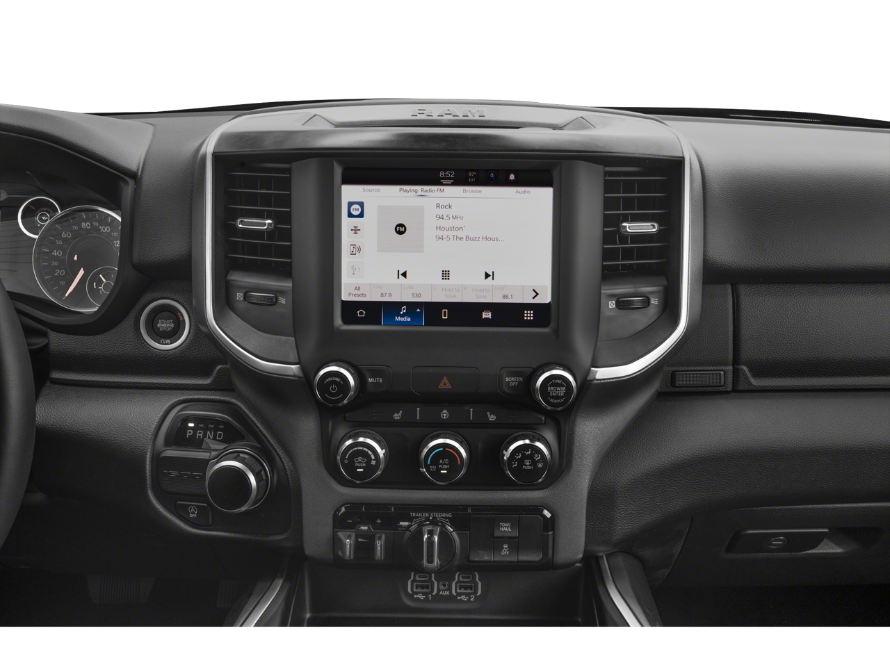 Big Horn Level 2 Equipment Group (DISC) (115V Auxiliary Power Outlet, 2nd Row In Floor Storage Bins, 400W Inverter, 4G LTE Wi-Fi Hot Spot, 8.4" Touchscreen Display, 9 Amplified Speakers w/Subwoofer, Air Conditioning ATC w/Dual Zone Control, Apple CarPlay, Auto-Dimming Exterior Driver Mirror, Auto-Dimming Rear-View Mirror, Black Exterior Mirrors, Black Premium Power Mirrors, Bluetooth® Handsfree Phone & Audio, Class IV Receiver Hitch, Cluster 7.0" TFT Color Display, Connectivity - US/Canada, Convex Wide-Angle Exterior Mirror Insert, Electric Shift-On-Demand Transfer Case, Exterior Mirrors Courtesy Lamps, Exterior Mirrors w/Heating Element, Exterior Mirrors w/Supplemental Signals, For Details, Visit DriveUconnect.com, For More Info, Call 800-643-2112, Front Fog Lamps, Glove Box Lamp, Google Android Auto, GPS Antenna Input, Heated Front Seats, Heated Steering Wheel, Integrated Center Stack Radio, LED Footwell Lighting, Media Hub w/2 Charge Only USBs, ParkSense Front/Rear Park Assist w/Stop, Power 2-Way Driver Lumbar Adjust, Power 8-Way Driver Seat, Power Adjustable Pedals, Power-Folding Mirrors, Radio: Uconnect 5 W w/8.4" Display, Rear Dome w/On/Off Switch Lamp, Rear Power Sliding Window, Rear Window Defroster, Remote Start System, Security Alarm, SiriusXM Satellite Radio, Sun Visors w/Illuminated Vanity Mirrors, Universal Garage Door Opener, and USB Host Flip), Level 1 Safety Group (Advanced Brake Assist, Full Speed Forward Collision Warning Plus, Lane Keep Assist, and Pedestrian Emergency Braking), Off Road Group (E-Locker Rear Axle, Front Extra HD Shock Absorbers, Off Road Decals, Raised Ride Height, Rear Extra HD Shock Absorbers, Selec-Speed (TM) Control, and Tow Hooks), Quick Order Package 23R Lone Star (Regional) (Lone Star Badge), Quick Order Package 27R Lone Star (Regional), Trailer Tow Group (Trailer Brake Control, Trailer Light Check, Trailer Reverse Steering Control, Trailer Tire Pressure Monitoring System, and Trailer Tow Mirrors), 3 Rear Seat Head Restraints, 3.21 Rear Axle Ratio, 4 Way Front Headrests, 4-Wheel Disc Brakes, 48V Belt Starter Generator, 6 Speakers, ABS brakes, Air Conditioning, Alloy wheels, AM/FM radio, Black Trailer Tow Power Mirrors (DISC), Blind Spot & Cross Path Detection, Brake assist, Bumpers: chrome, Cloth Bench Seat, Compass, Delay-off headlights, Driver door bin, Dual front impact airbags, Dual front side impact airbags, Electronic Stability Control, Emergency communication system: SiriusXM Guardian, Front anti-roll bar, Front Center Armrest w/Storage, Front License Plate Bracket, Front reading lights, Front Seat Back Map Pockets, Front wheel independent suspension, Fully automatic headlights, Global Telematics Box Module (TBM), Heated door mirrors, Illuminated entry, Integrated Voice Command w/Bluetooth®, Leather steering wheel, LED Taillamps, Low tire pressure warning, Occupant sensing airbag, Outside temperature display, Overhead airbag, Overhead console, Panic alarm, ParkView Rear Back-Up Camera, Passenger door bin, Passenger vanity mirror, Pick-Up Box Lighting, Power door mirrors, Power steering, Power windows, Radio data system, Radio: Uconnect 3 w/5" Display, RAM Grille Badge - Chrome, Rear 60/40 Folding Seat, Rear anti-roll bar, Rear seat center armrest, Rear step bumper, Remote keyless entry, Speed control, Split folding rear seat, Steering wheel mounted audio controls, Tachometer, Telescoping steering wheel, Tilt steering wheel, Traction control, Tri-Fold Tonneau Cover, Trip computer, Variably intermittent wipers, Voltmeter, Wheel to Wheel Side Steps, and Wheels: 18" x 8" Cast-Aluminum PainteD. Recent Arrival!
