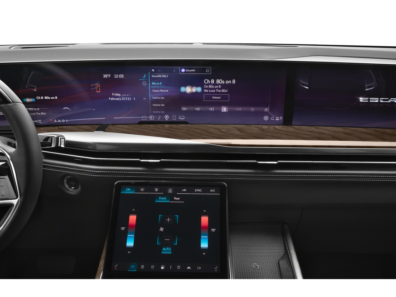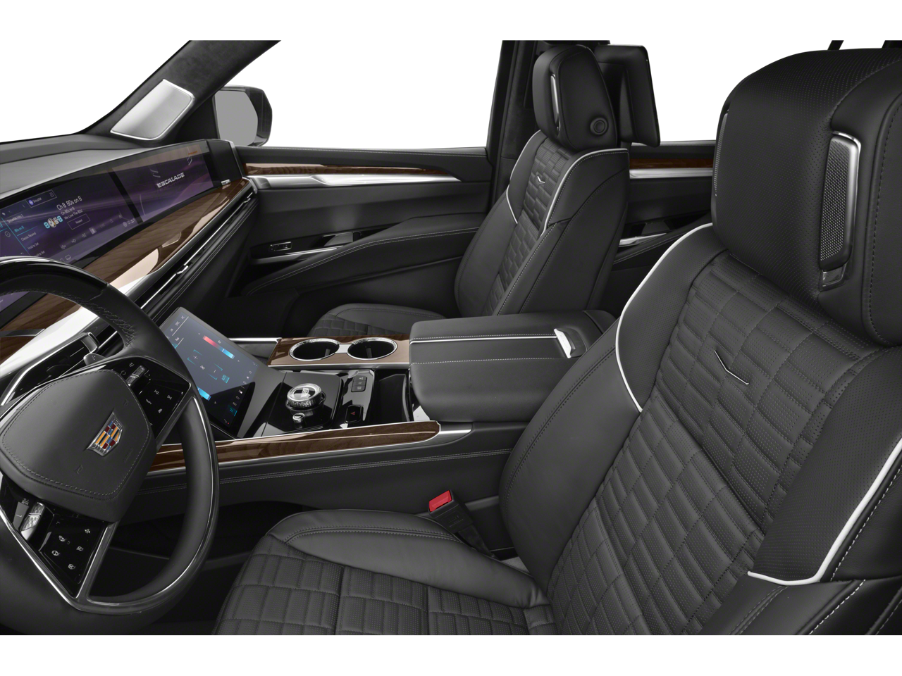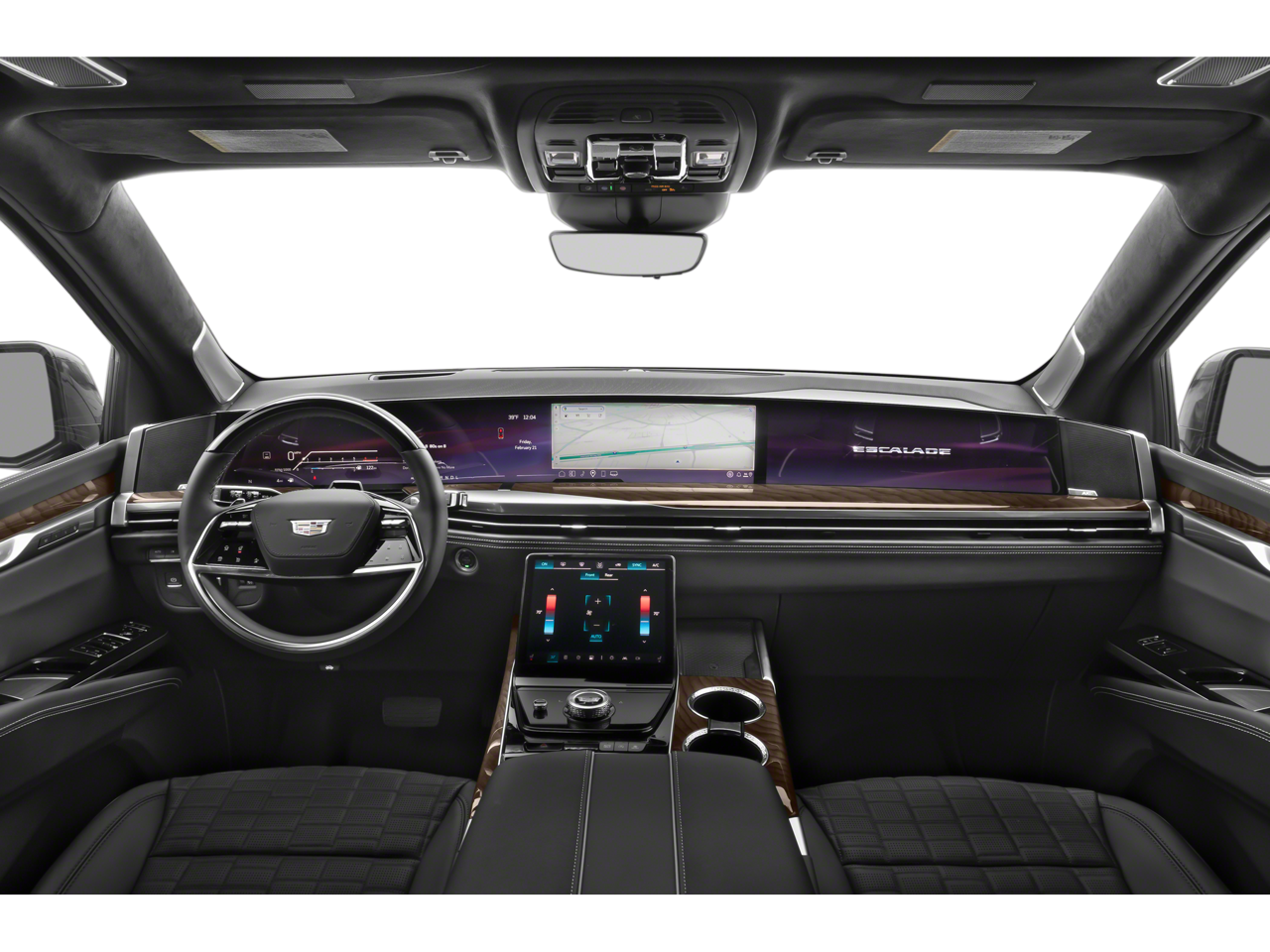 Step inside and be captivated by the Escalade's unparalleled attention to detail. The AKG Studio 19-speaker audio system immerses you in a concert-hall experience, while the Reconfigurable Full-Color Head-Up Display keeps vital information within your line of sight. Heated and ventilated front seats, a panoramic sunroof, and a wealth of smart technology features elevate your driving experience to new heights.