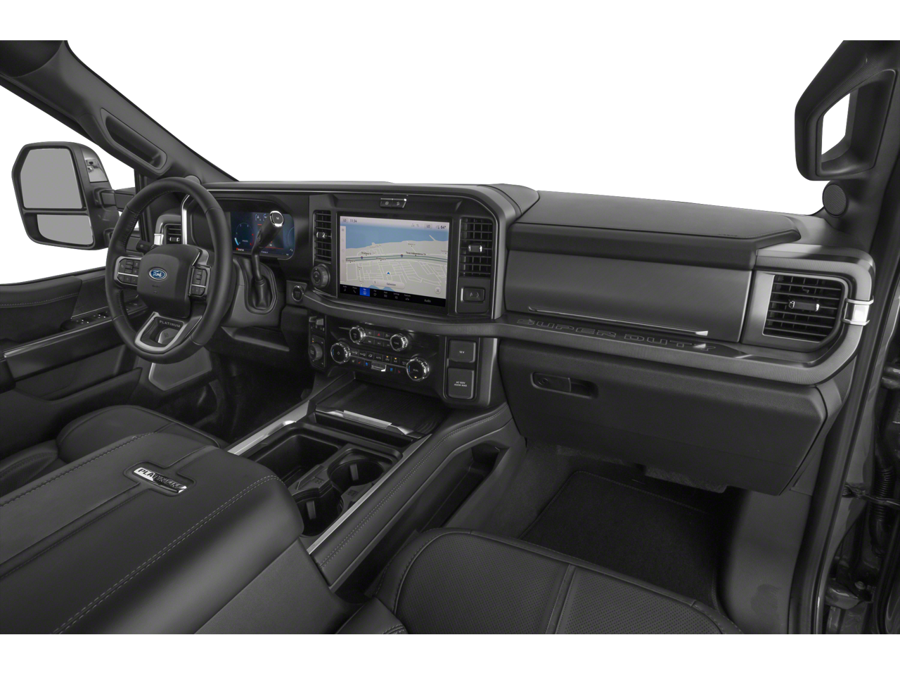 5th Wheel/Gooseneck Hitch Prep Package, FX4 Off-Road Package (Hill Descent Control, Off-Road Specifically Tuned Shock Absorbers, and Unique FX4 Off-Road Box Decal), Order Code 713A (Flow-Through Console, Radio: B&O Unleashed Sound System by Bang & Olufsen, SiriusXM Radio with 360L, SYNC 4 with Enhanced Voice Recognition, Unique Platinum Leather 40/Console/40 Seats, and Wheels: 20" Bright Machined and Painted Aluminum), 4WD, 14 Speakers, 4-Wheel Disc Brakes, ABS brakes, Adjustable pedals, Air Conditioning, Alloy wheels, AM/FM radio: SiriusXM with 360L, Auto High-beam Headlights, Auto tilt-away steering wheel, Auto-dimming Rear-View mirror, Automatic temperature control, Brake assist, Bumpers: body-color, Compass, Delay-off headlights, Driver door bin, Driver vanity mirror, Dual front impact airbags, Dual front side impact airbags, Electronic Stability Control, Emergency communication system: SYNC 4 911 Assist, Front anti-roll bar, Front Bucket Seats, Front Center Armrest, Front dual zone A/C, Front fog lights, Front reading lights, Fully automatic headlights, Garage door transmitter, Gooseneck Hitch Kit, Heads-Up Display, Heated door mirrors, Heated front seats, Heated rear seats, Heated steering wheel, Illuminated entry, Internet access capable: FordPass Connect 5G, Leather steering wheel, LED Roof Clearance Lights, Low tire pressure warning, Memory seat, Navigation System, Outside temperature display, Overhead airbag, Overhead console, Panic alarm, Passenger door bin, Passenger vanity mirror, Pedal memory, Power door mirrors, Power driver seat, Power passenger seat, Power steering, Power windows, Rain sensing wipers, Rear reading lights, Rear seat center armrest, Rear step bumper, Rear window defroster, Remote keyless entry, Security system, Speed control, Split folding rear seat, Steering wheel memory, Steering wheel mounted A/C controls, Steering wheel mounted audio controls, Tachometer, Telescoping steering wheel, Tilt steering wheel, Tough Bed Spray-in Bedliner, Traction control, Trip computer, Turn signal indicator mirrors, Variably intermittent wipers, and Ventilated front seats. Recent Arrival!